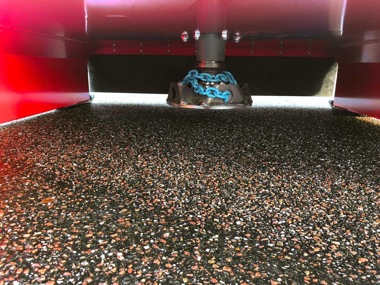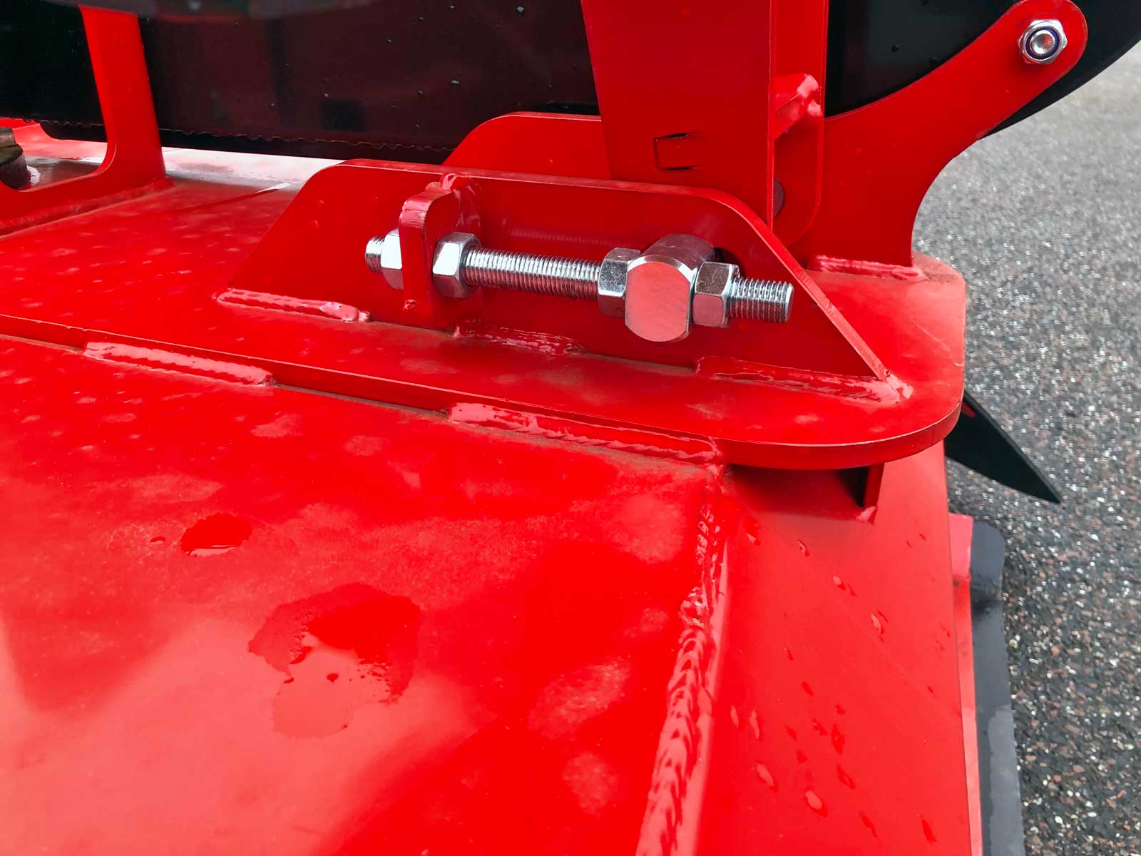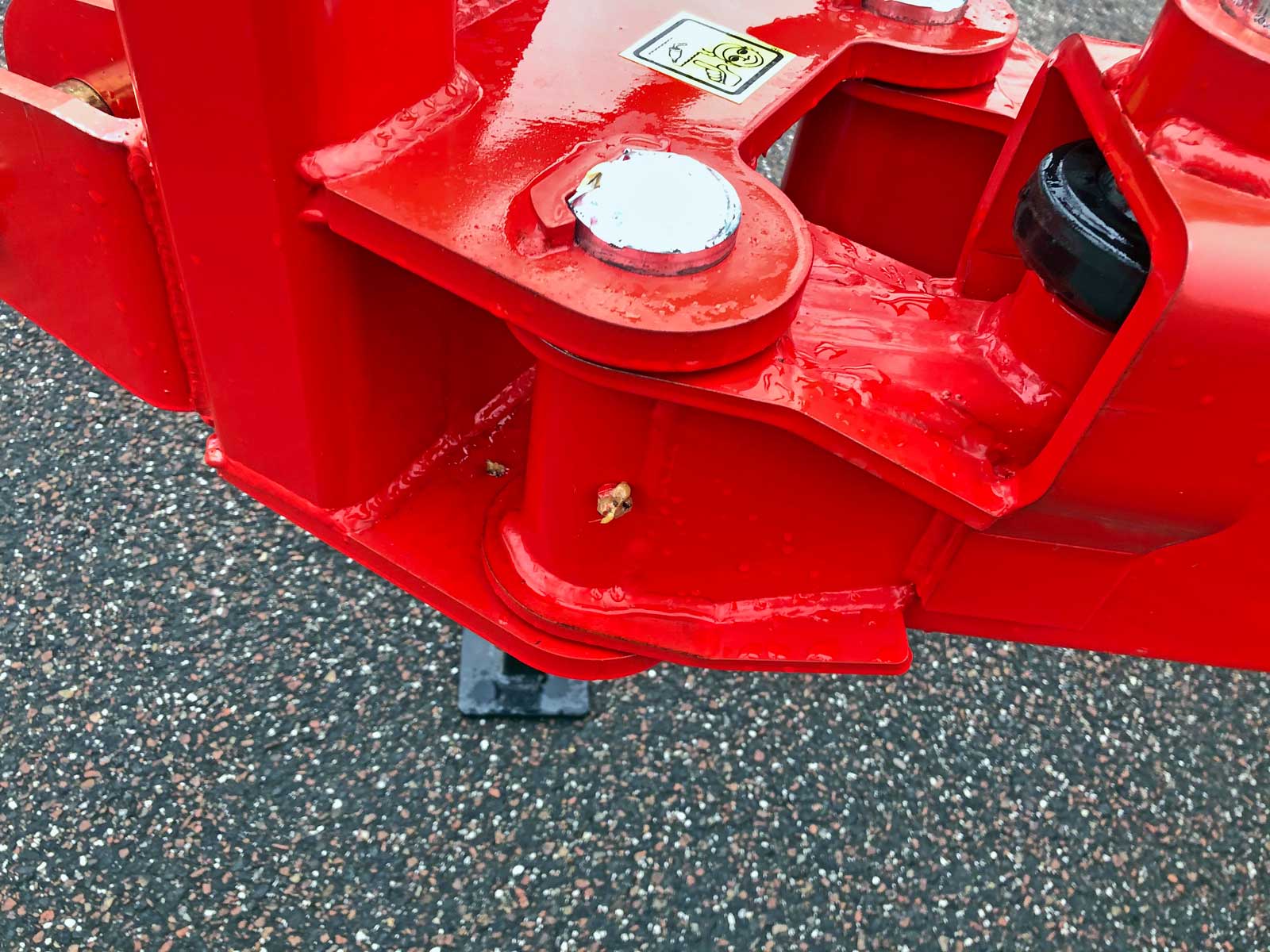 The wear shoes are made of Hardox 500 metal and the main frame is built of Domex 420 high-strength steel. In addition, a reinforced rubber cover is fitted to the back to protect against flying objects.