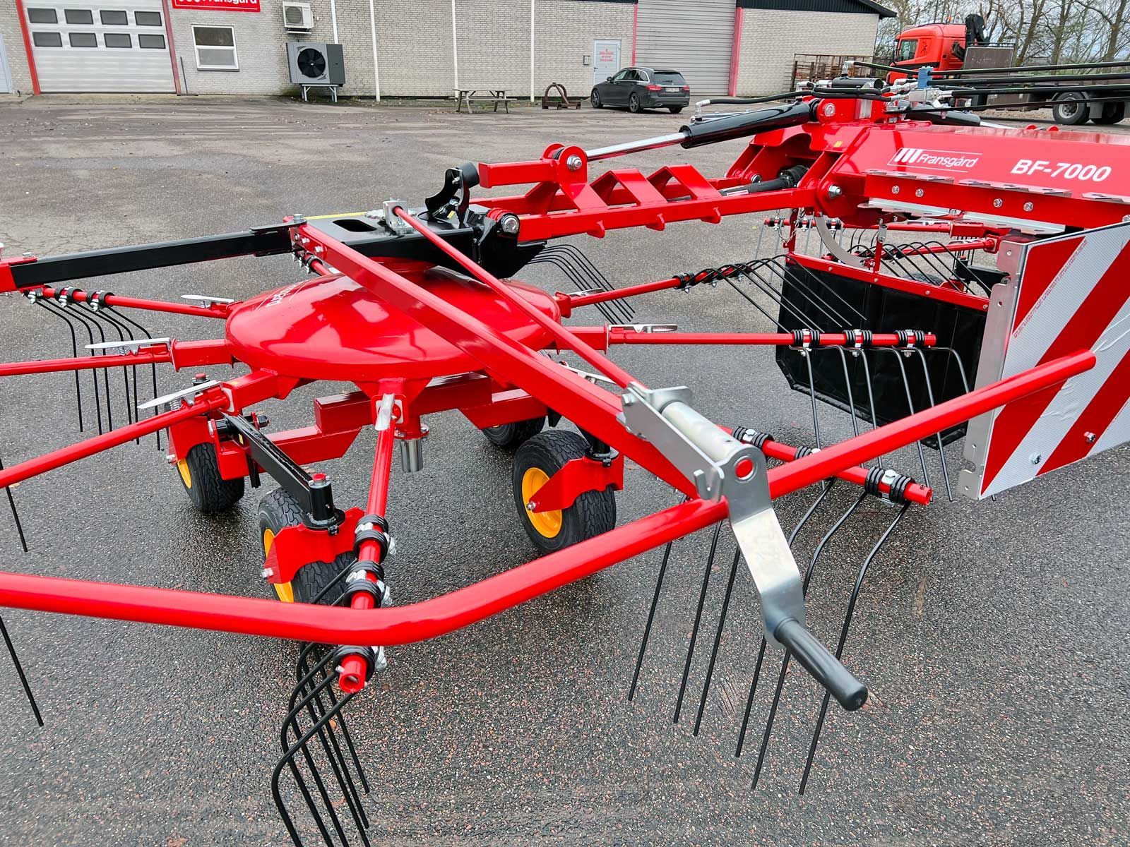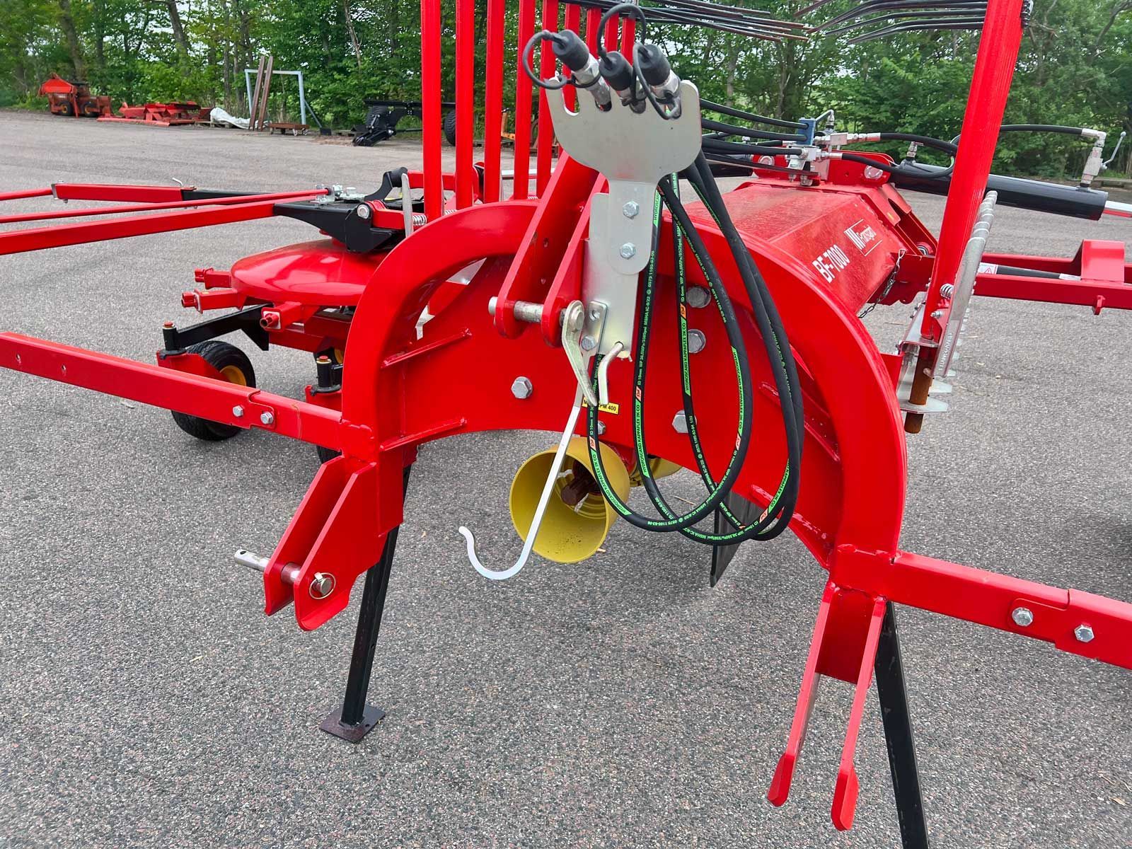 Den dobbelte BF-7000 rotorrive er med en arbejdsbredde på 7 m et godt alternativ til en bugseret rive. Den liftophængte BF-7000 anvendes til både, korn, græs og hø i varierende mængder. Maskinen har stor arbejdsbredde men er alligevel kompakt under transport.