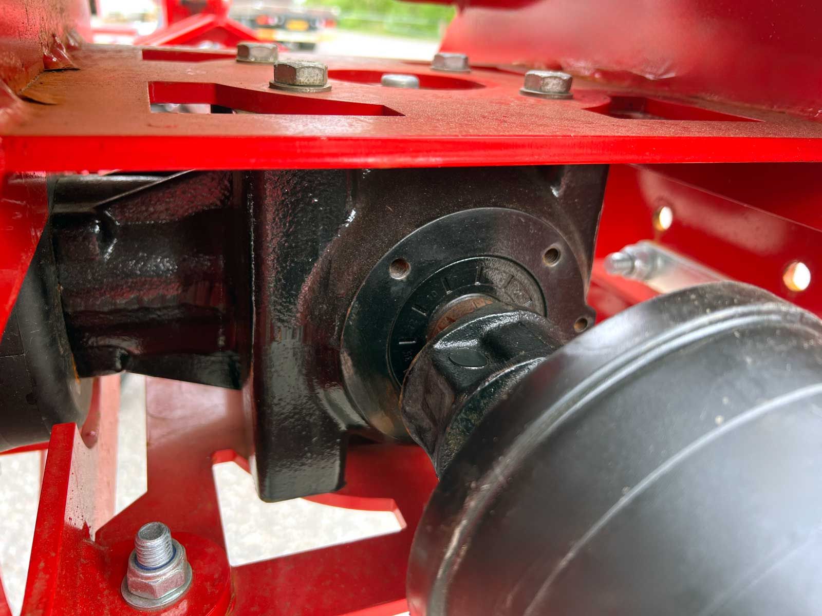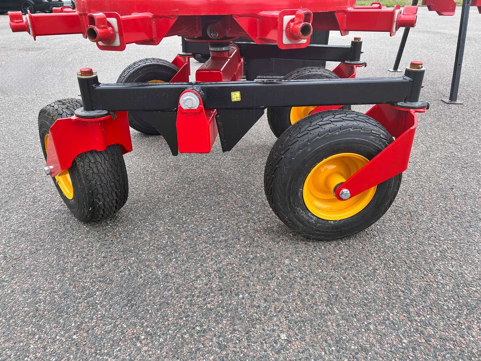 BF-7000 er opbygget på 2 kraftige hjulophæng. Boogie-systemet består af 2 sæt med hver 4 hjul og giver en stabil og rolig arbejdsgang. Den har 4 store drejelige hjul og et fleksibel hjulophæng under hver rotor og sammen med de flydende cylindere, følger den alle terræner optimalt.