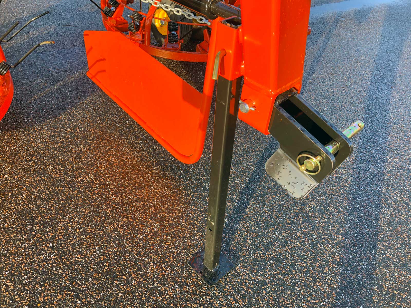 Der Schwader besteht aus einer robusten Konstruktion mit speziell gehärteten Kronen/Ritzeln oberhalb jedes Rotors und starken U-Eisen am Boden, wo die gefederten Scheibenfedern montiert sind. Die Scheibenfedern werden werkzeuglos von der Scheiben- in die Spreizstellung gebracht.