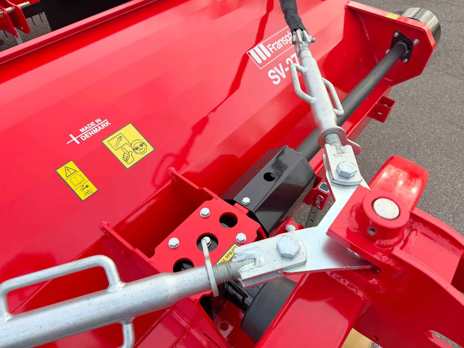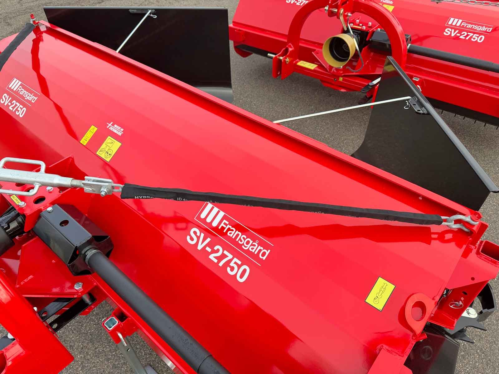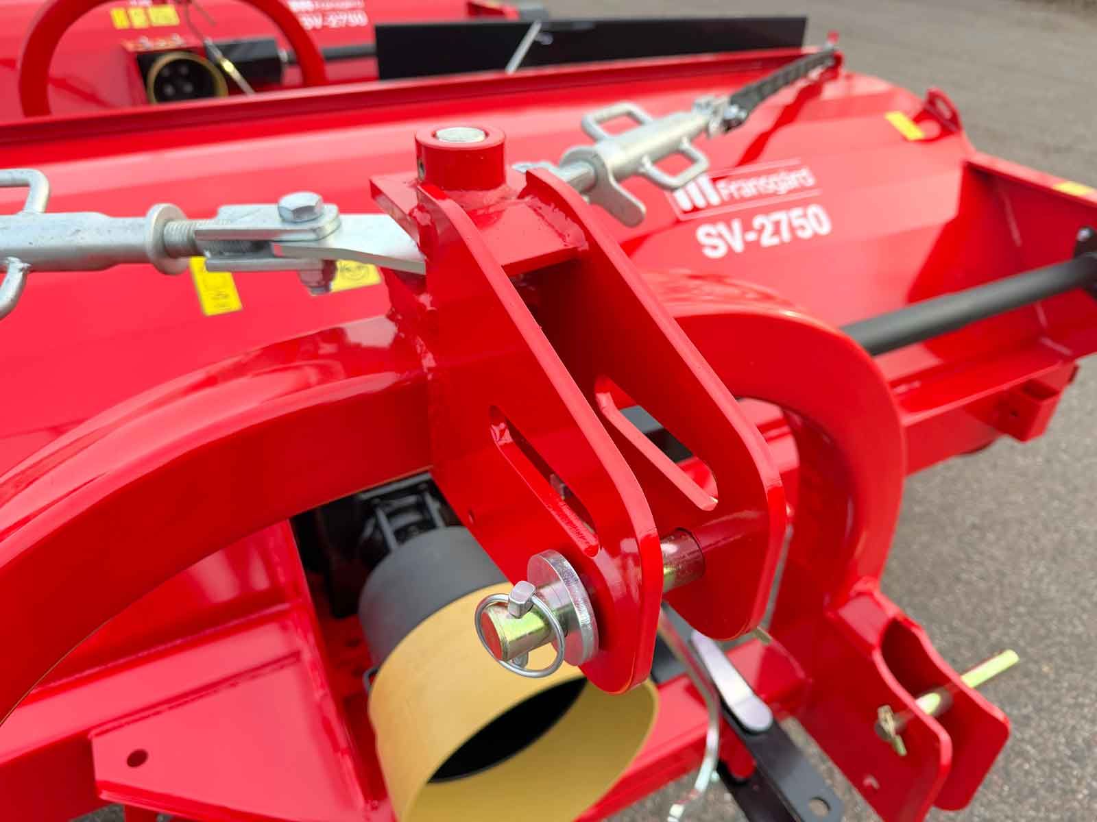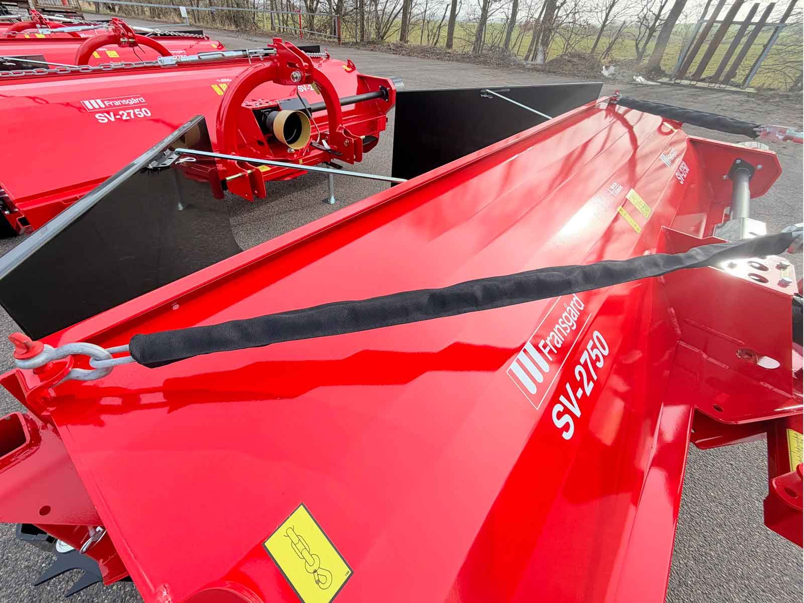 Das Modell SV-2750 verfügt zudem über eine feste, neigbare Dreipunktaufhängung und Schwenkräder. Die großen Schwadschutzbleche sind verstellbar, sodass die Schwadbreite bis zu 80 cm eingestellt werden kann.