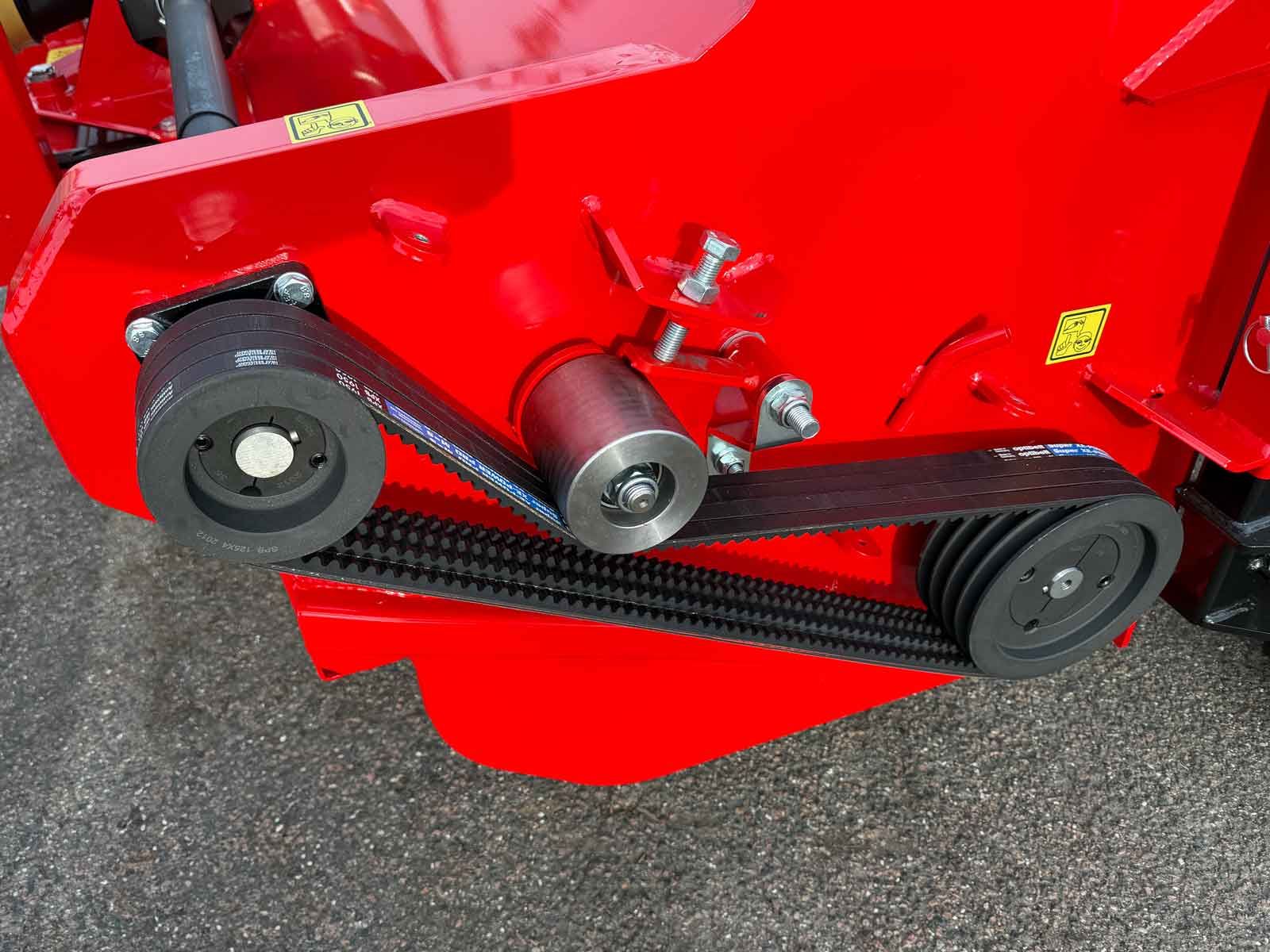 Der SV-2750 zeichnet sich serienmäßig durch seine robuste Bauweise und zahlreiche effektive Funktionen aus. Vier Keilriemen oder optional ein Kettenantrieb gewährleisten einen optimalen Betrieb ohne unnötige Stillstände. Der leistungsstarke Rotor mit sechs Reihen effektiver Federn und einem großzügigen Abstand (19 cm) zum umlaufenden Schutzblech verarbeitet selbst große Erntegutmengen. Dies sorgt für einen gleichmäßigen Materialfluss und verbessert die Erntequalität.