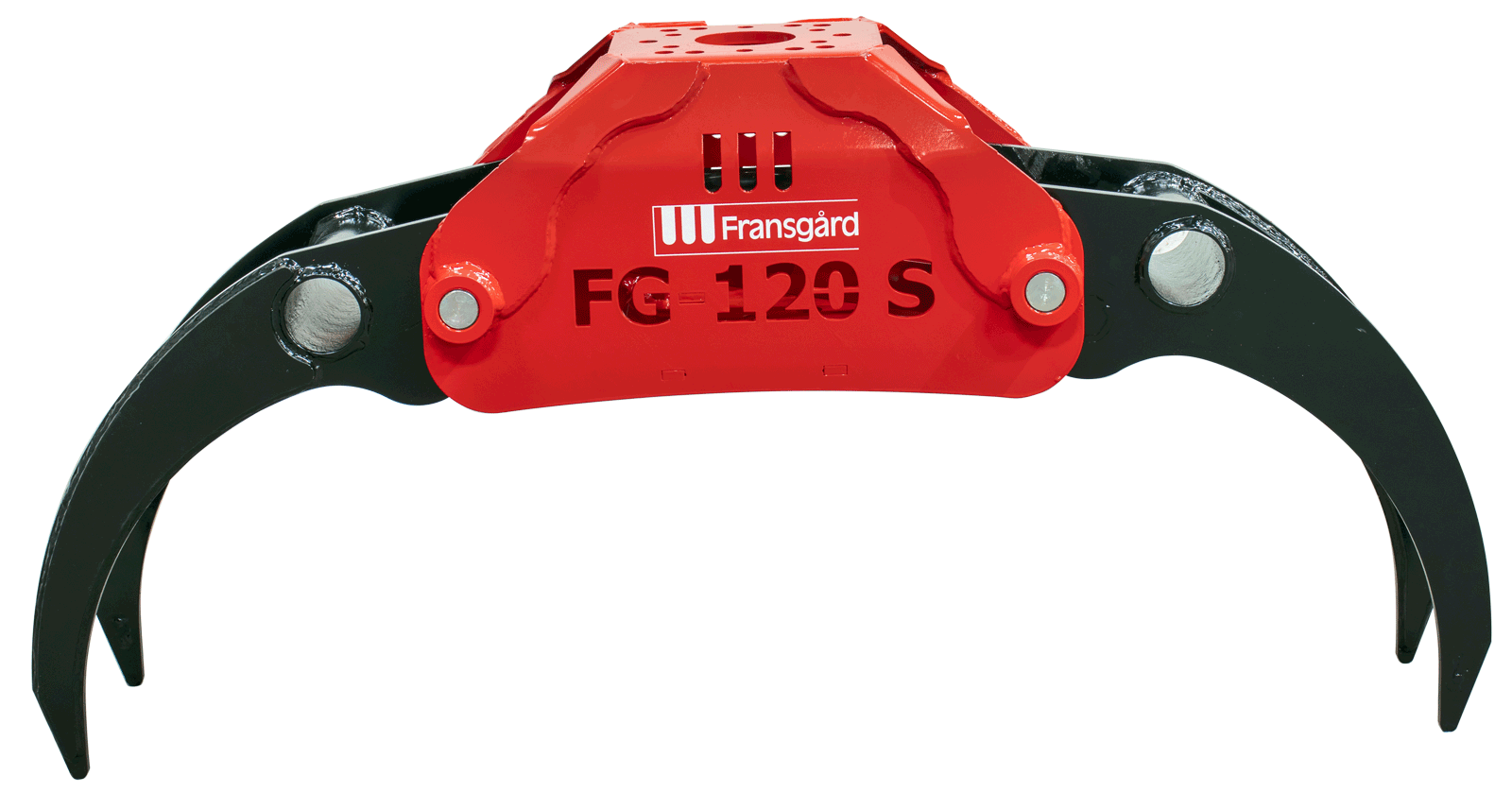 Fransgård Maskinfabrik's FG-120 and FG-120S forest grapples are manufactured in the well-known Fransgård quality at our own factory in Denmark. The two models are suitable for handling logs. Two parallel bars ensure that the grapple closes straight and does not dig deeper into the forest floor.
