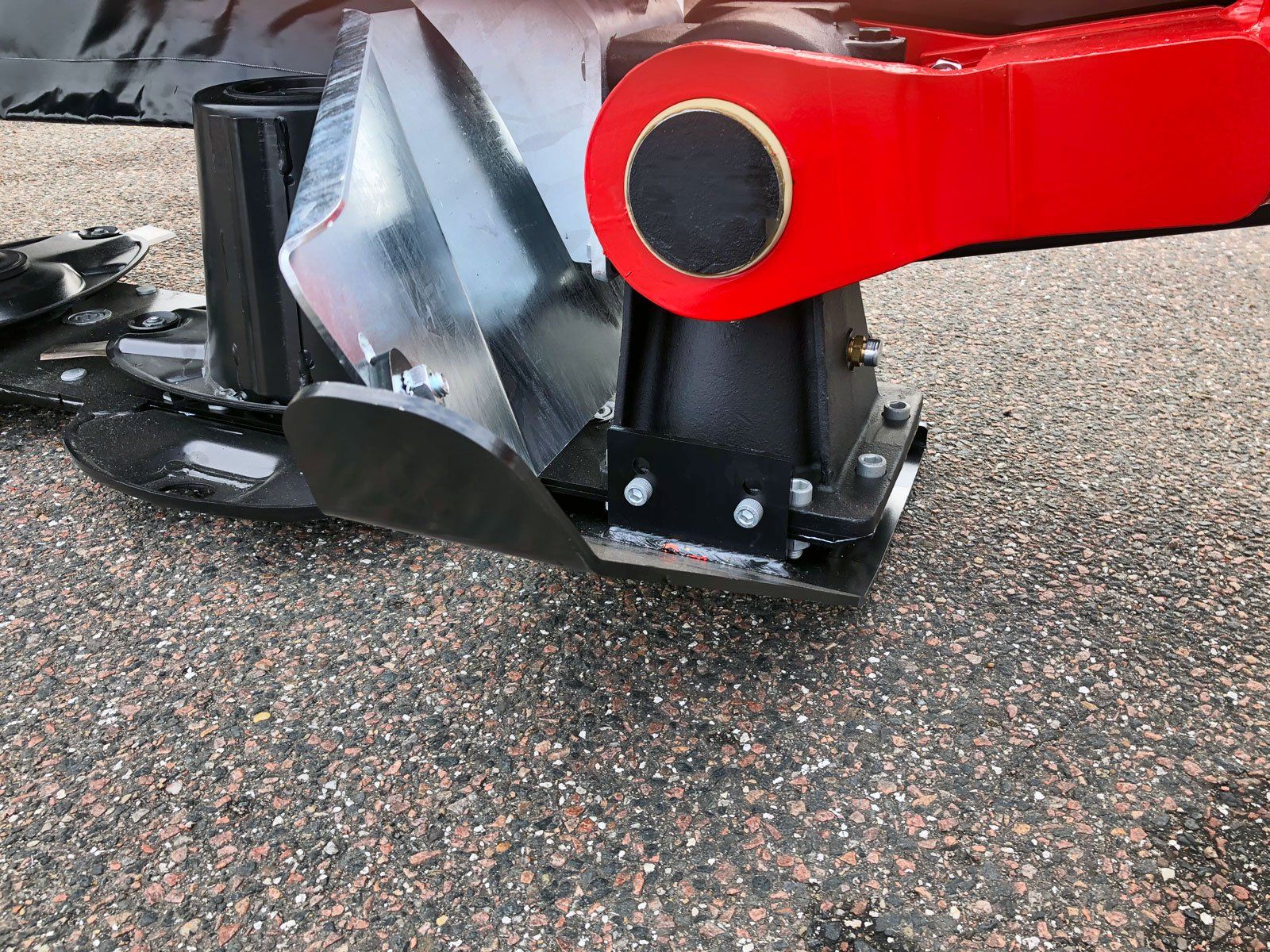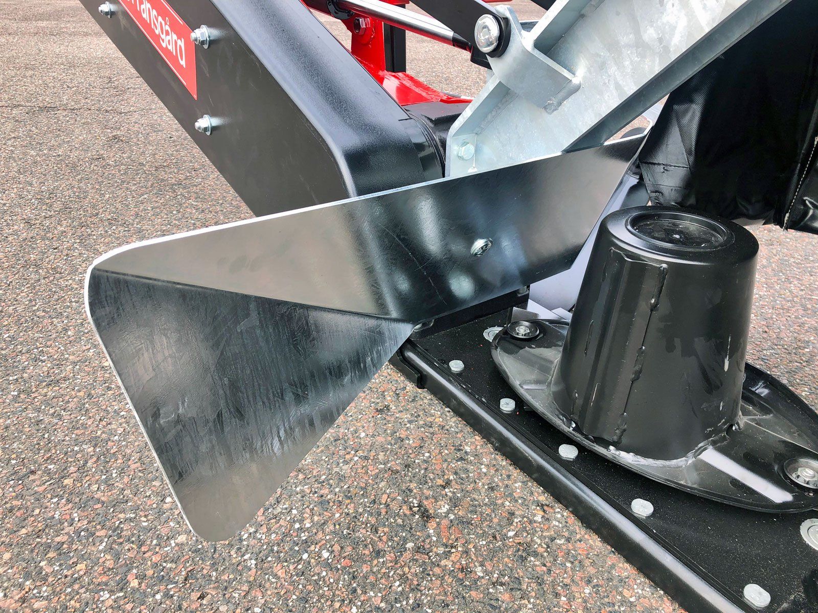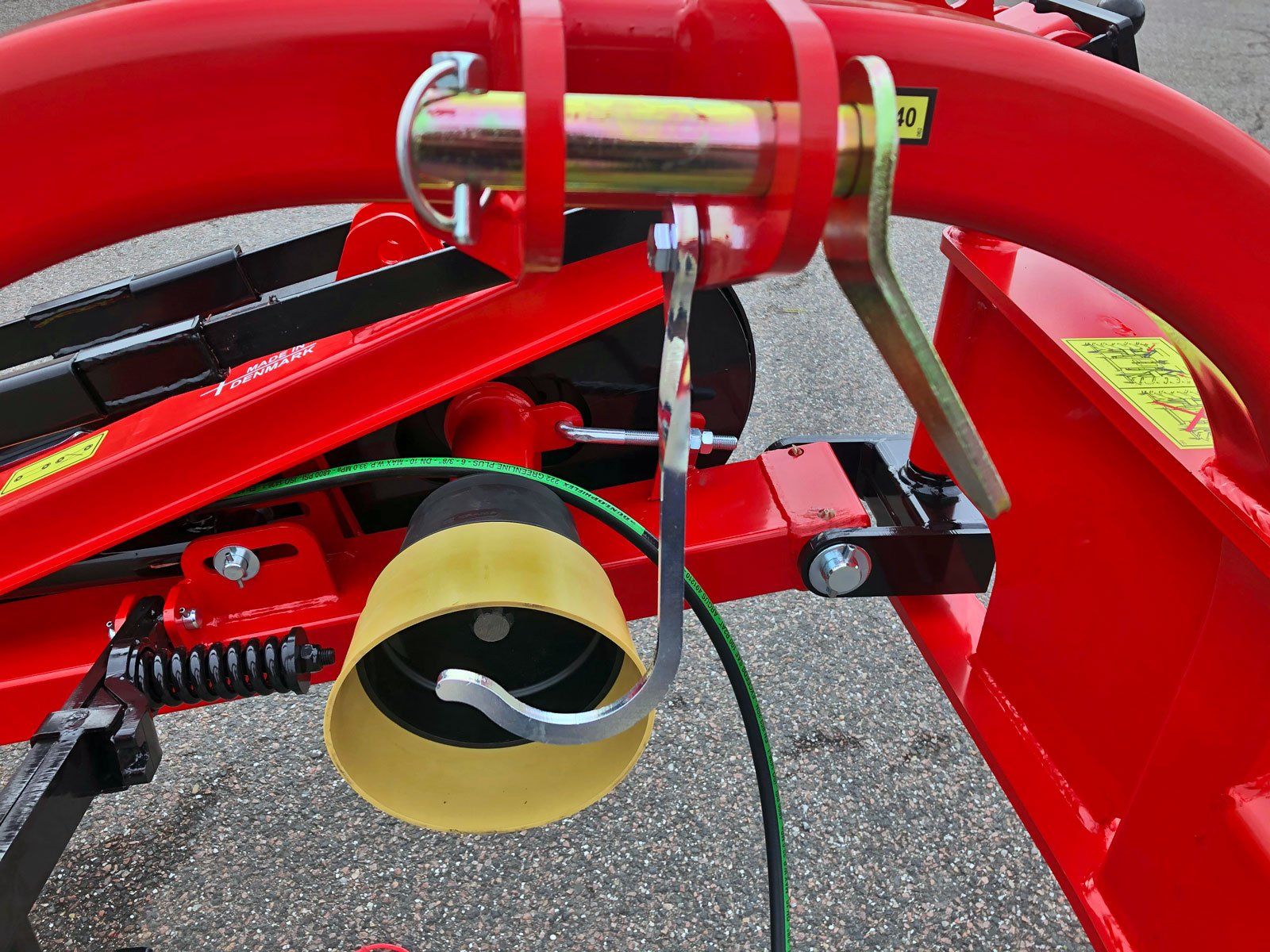 The disc mower is fitted with a strong 3-point suspension, which with a rolled 4-edge profile significantly increases the strength of the construction. The model is prepared for the installation of the hydraulic lifting system, which significantly increases efficiency, as the cutter bar can be raised by simply pulling a handle with direct access to the hydraulics on the disc mower, instead of having to raise the tractor's lifting arms, which is more time-consuming.