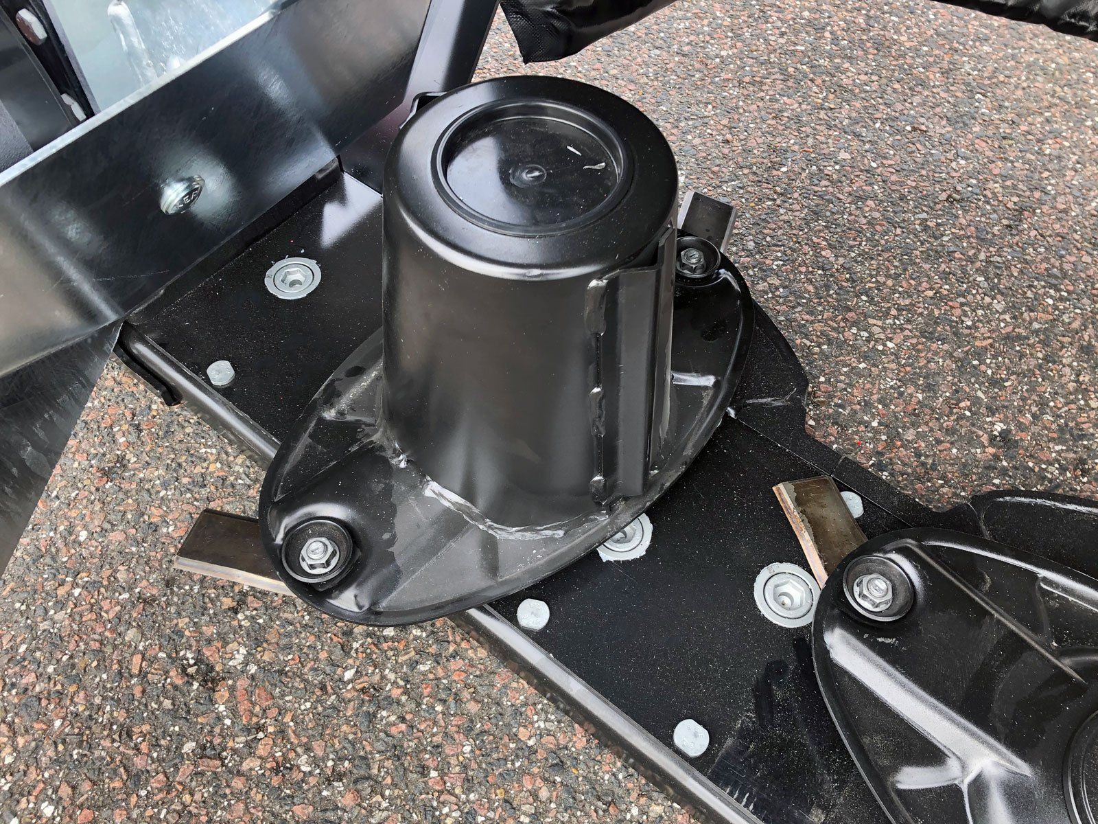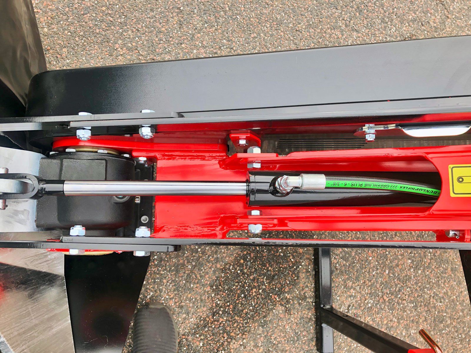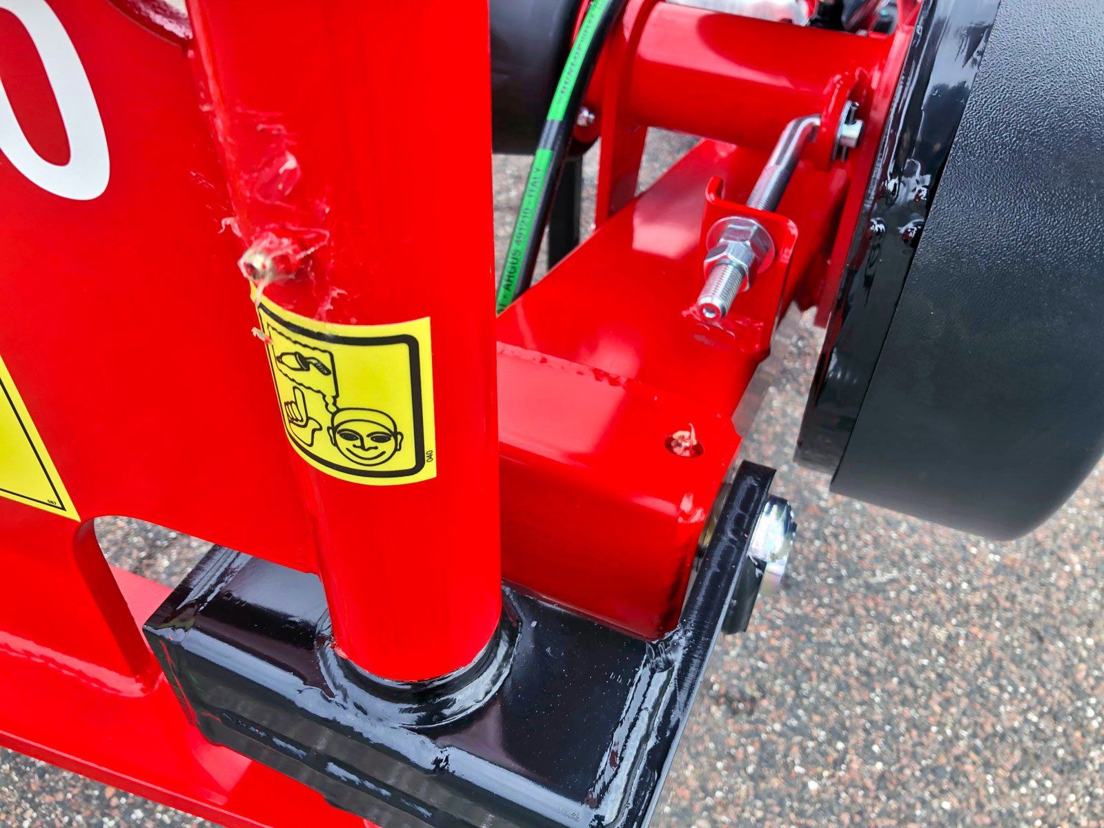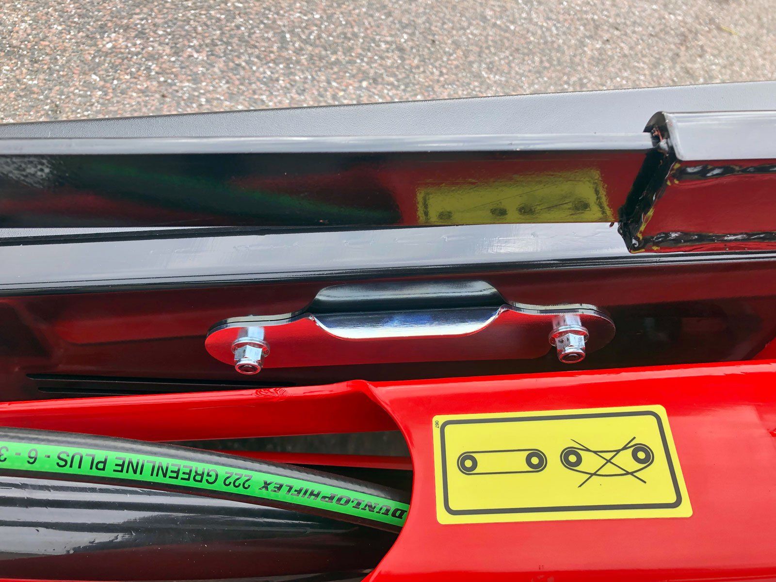 The disc mower is fitted with a strong 3-point suspension, which with a rolled 4-edge profile significantly increases the strength of the construction. The model is prepared for the installation of the hydraulic lifting system, which significantly increases efficiency, as the cutter bar can be raised by simply pulling a handle with direct access to the hydraulics on the disc mower, instead of having to raise the tractor's lifting arms, which is more time-consuming.