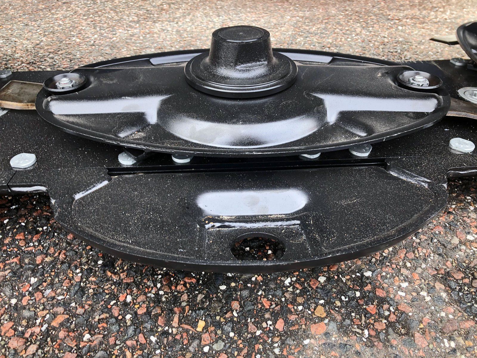 The robust and service-friendly cutter bar from Italian manufacturer Comer operates in a sealed oil bath for minimal maintenance. The oval discs can be removed separately and serviced individually. Disc mowers are fitted with the new right- and left-turn blades, which cut the grass better. Combined with 2 cutter caps placed at the end of each side of the cutter bar, you even get a much better flow of the cut crop through the machine. Overall, it makes for faster and more efficient swath wilting.
