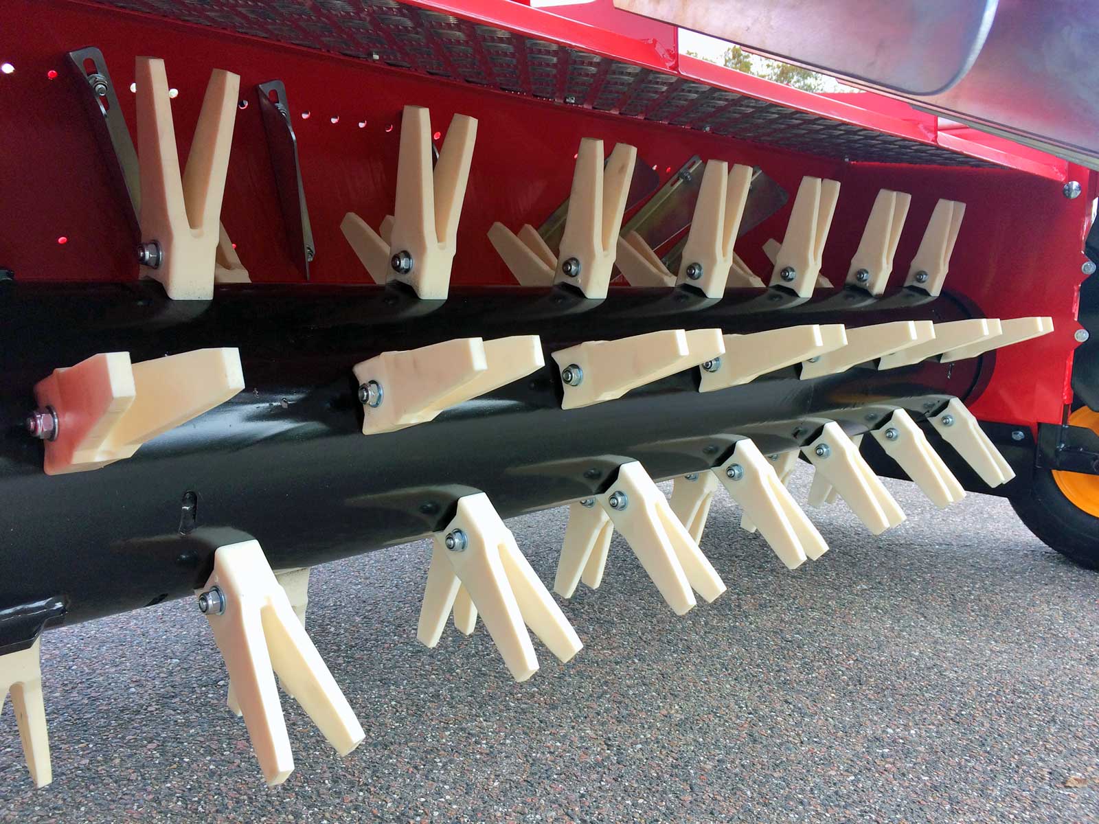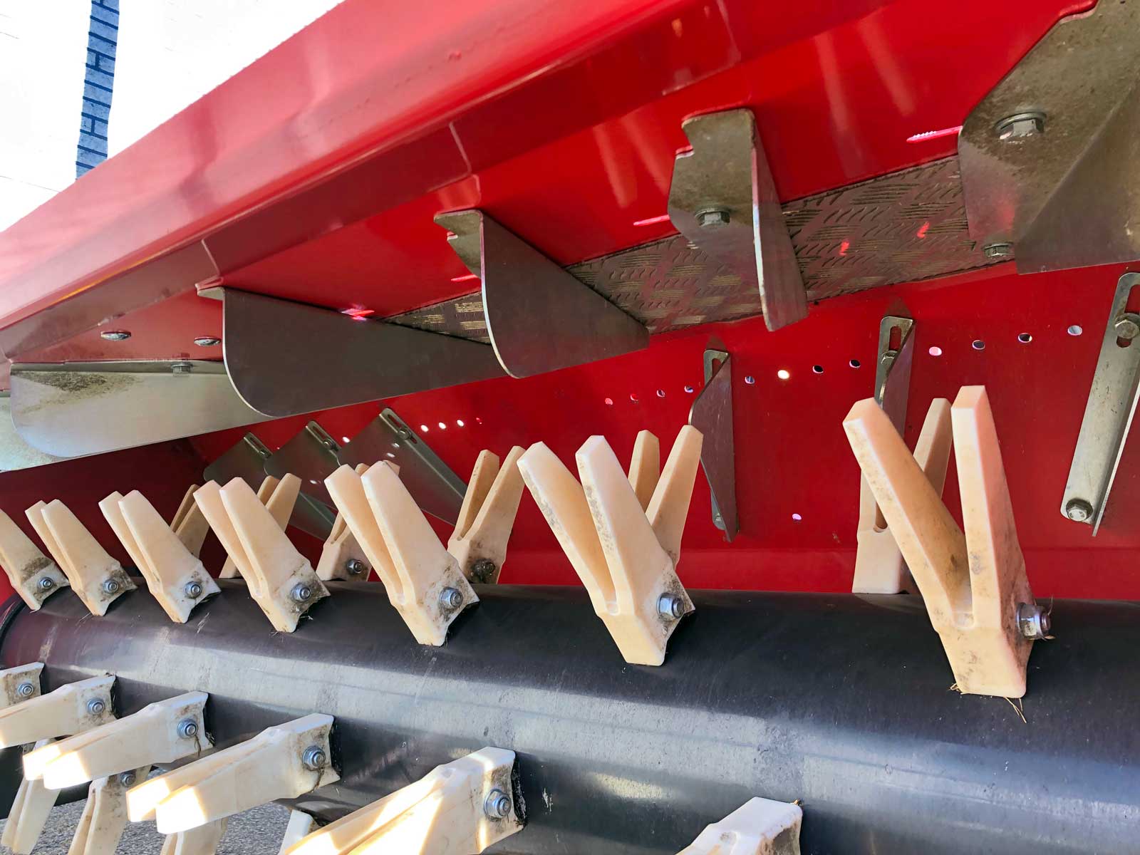The crimper plate is coated with aluminium, which withstands the grass sap. The plate has 6 settings for the intensity of the crimping and both inner and outer swath plates, which ensure an even flow and the proper distribution of the material.