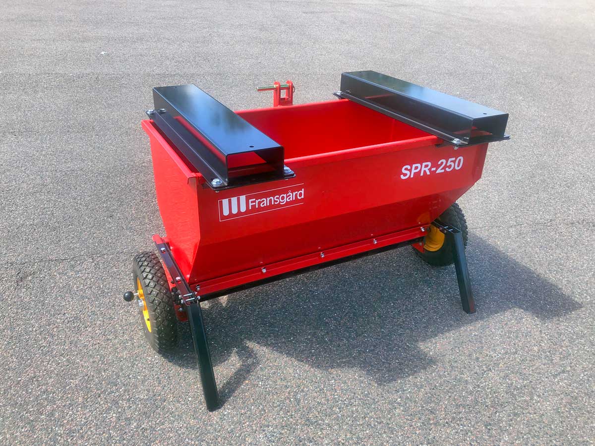 Fransgård's smallest spreader with a spreading width of 120 cm is available in 2 efficient models. The machine is suitable for a compact tractor, ATV, forklift or similar. The spreader is a perfect choice for companies, housing associations, cemeteries, public administrations, private individuals and others who need to spread coarse sand, sand/salt, pebbles or similar material.