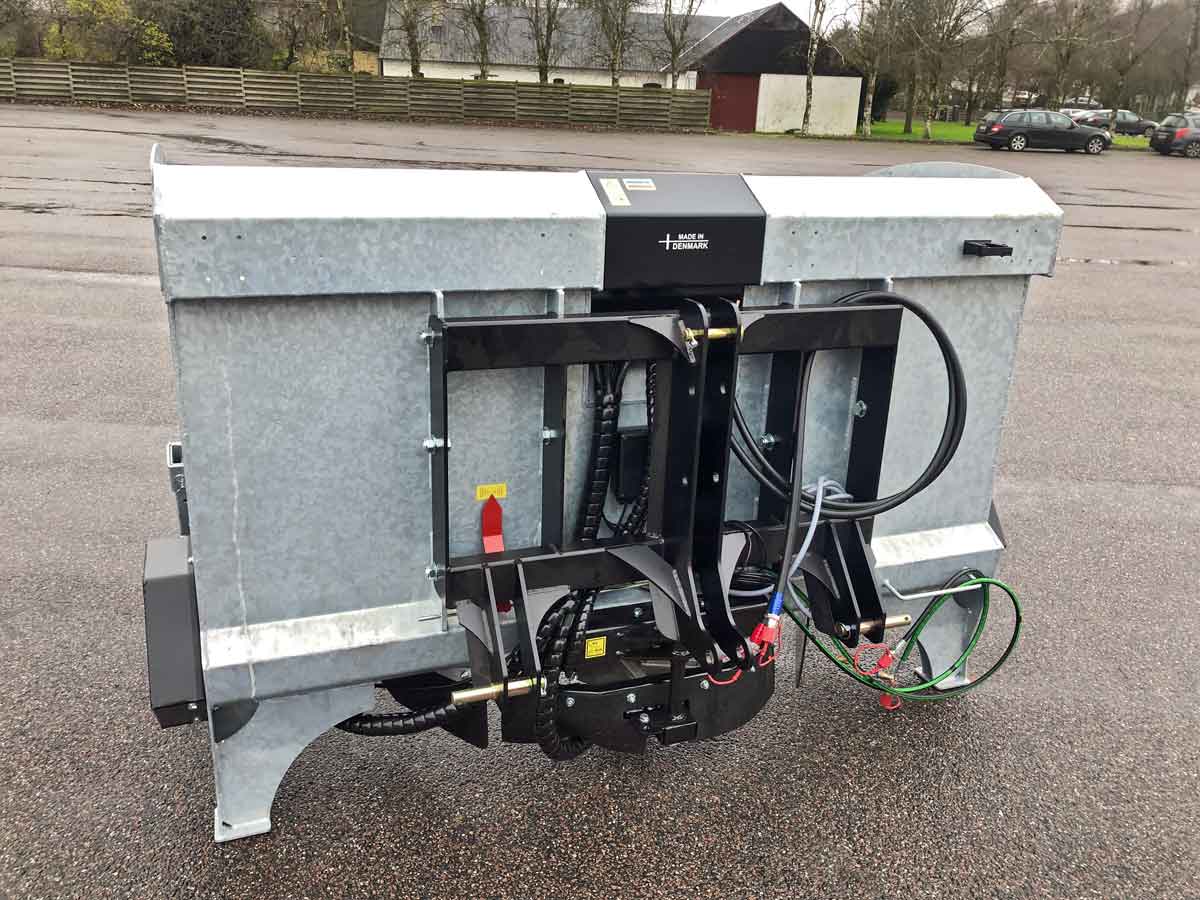 The spreader has an adjustable opening for the disc and hydraulic closing fitting for the supply of spreading material. The spreading symmetry can be hydraulically adjusted to spread from 2 up to 10 metres wide. The construction also consists of large, solid valve block with the option of manual control that is prepared for electrical control.