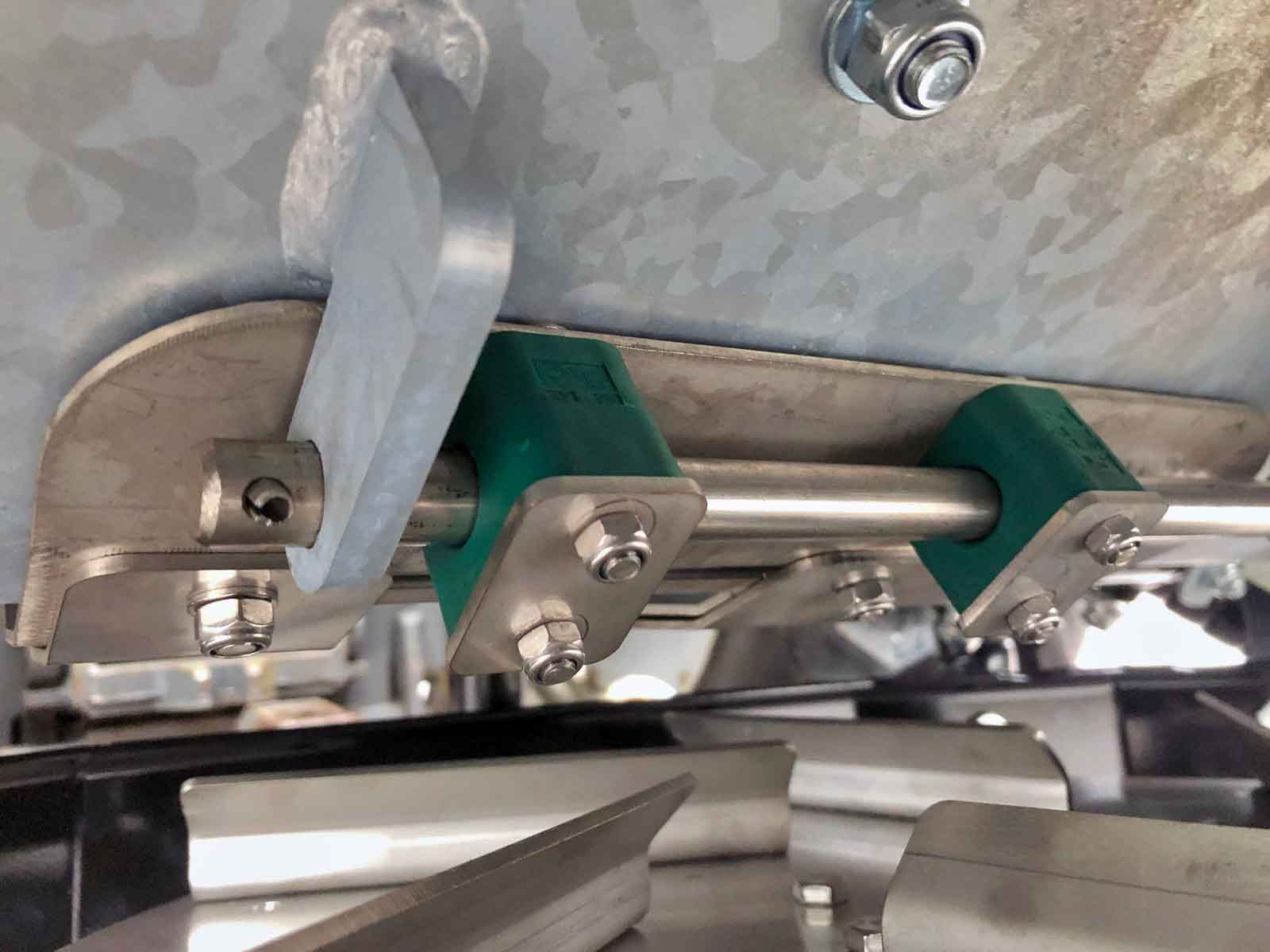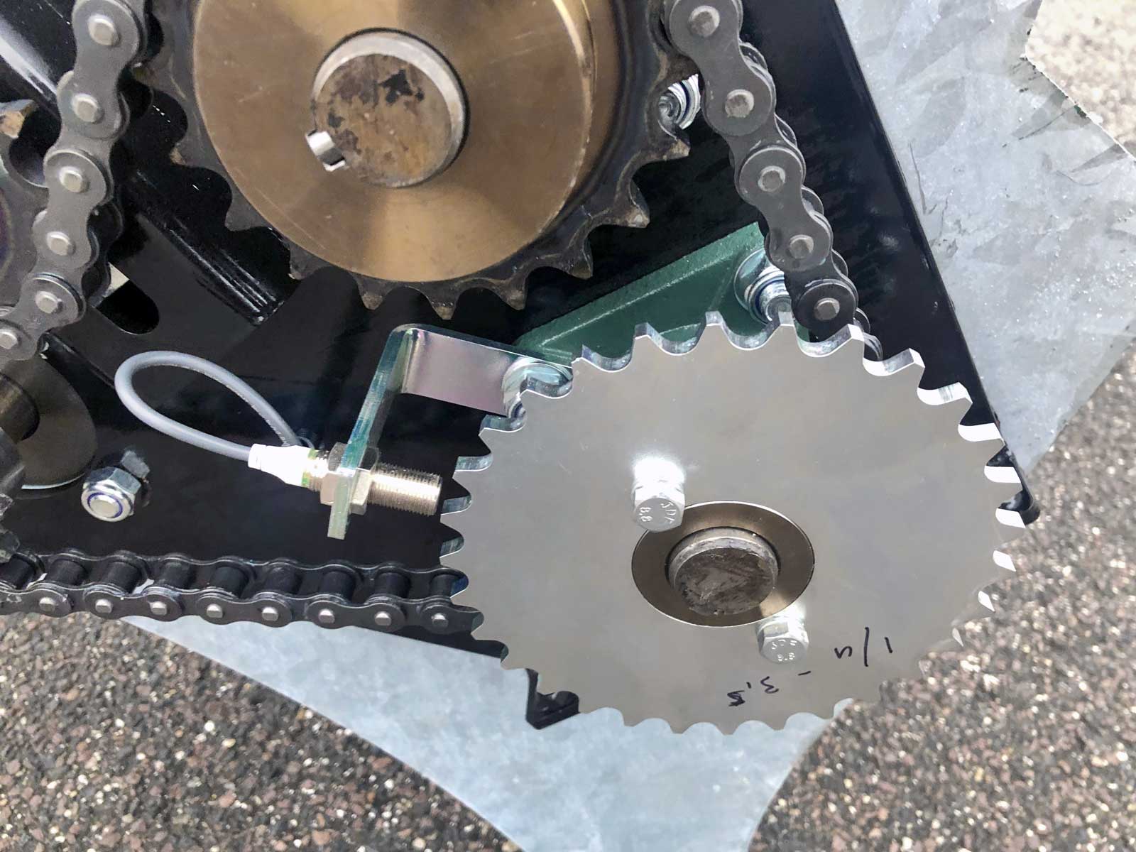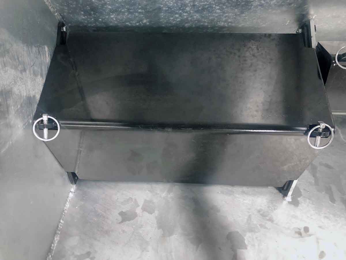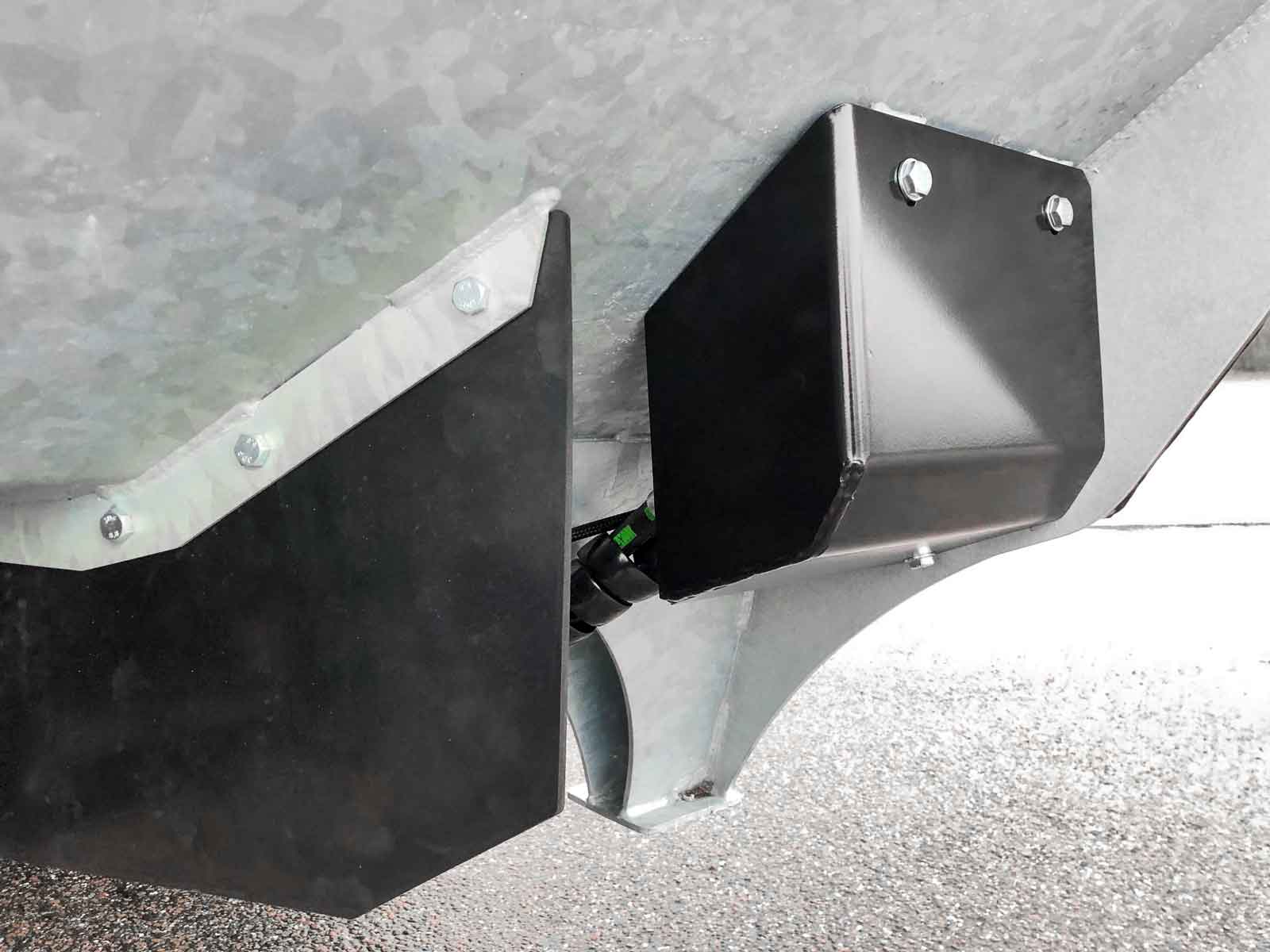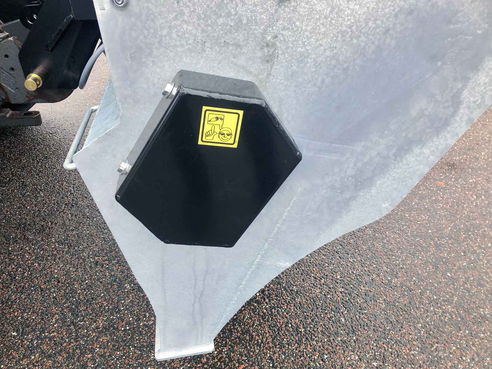 The spreader box is made of high strength steel (Domex 420) with wear steel on the top and bottom. The disc and closure fitting are made of stainless steel. The machine has a powerful hydraulic motor and a chain drive with a powerful tension wheel for operating the auger and agitator. The diameter of the auger is the minimum and grows steadily in size (progressively) towards the centre of the spreader to the disc. This provides a smoother flow of material to the disc, reducing the risk of clogging and reducing wear on the parts.
