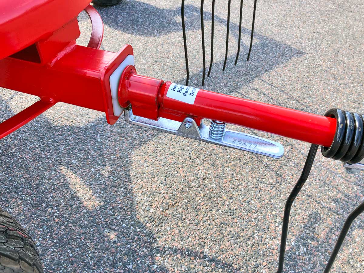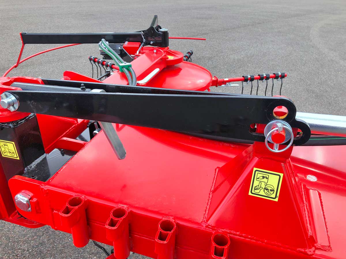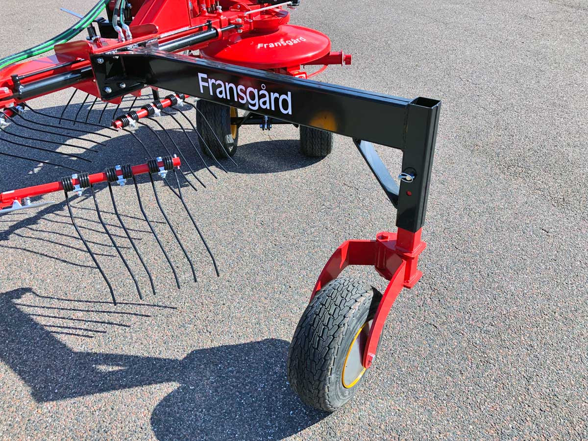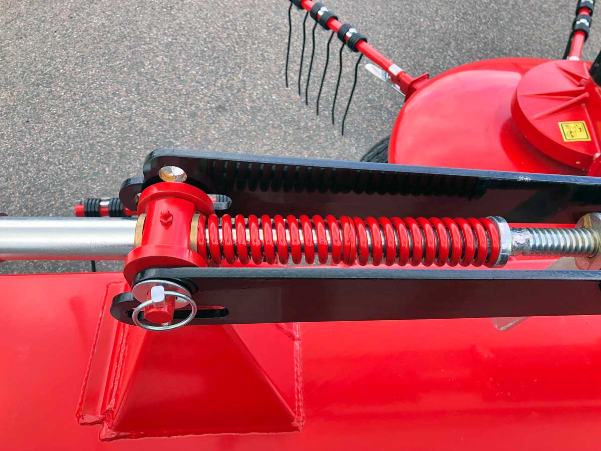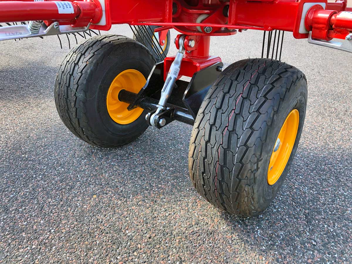 Stepless height adjustment of wheels and angle of rotors. Removable arms without the need for tools. The rake is prepared for front wheels (optional extras), which are always recommended for hilly terrain.