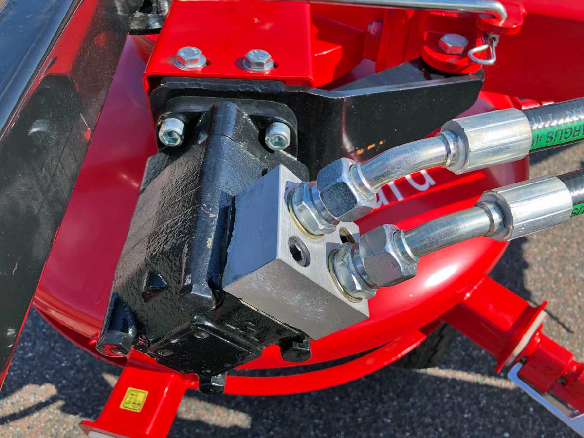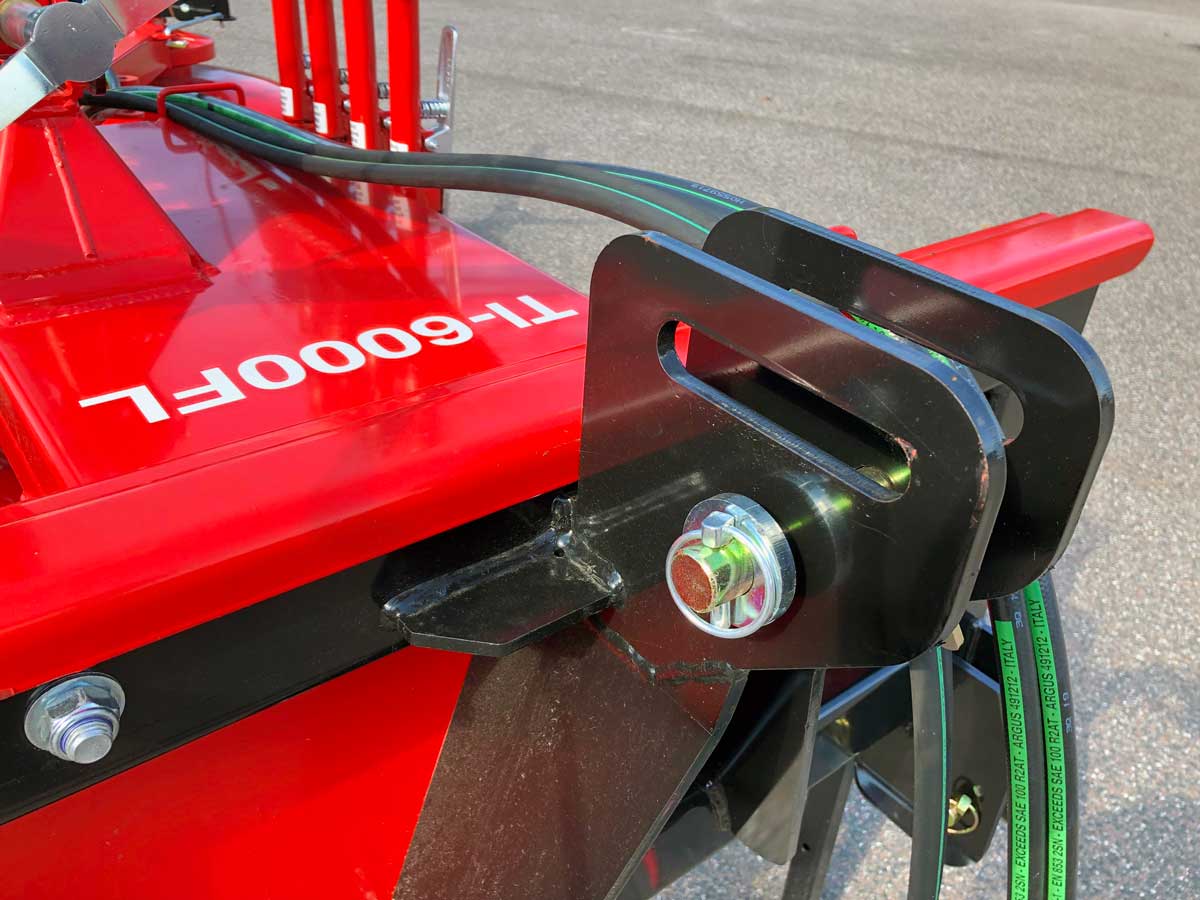 The TI-6000FL is hydraulically driven and requires only 45 l/min, which means that there is also excess oil for the baler. The bracket is fitted with bolts which make it easy to change. The grate can be mounted in the front lift or on the front loader.