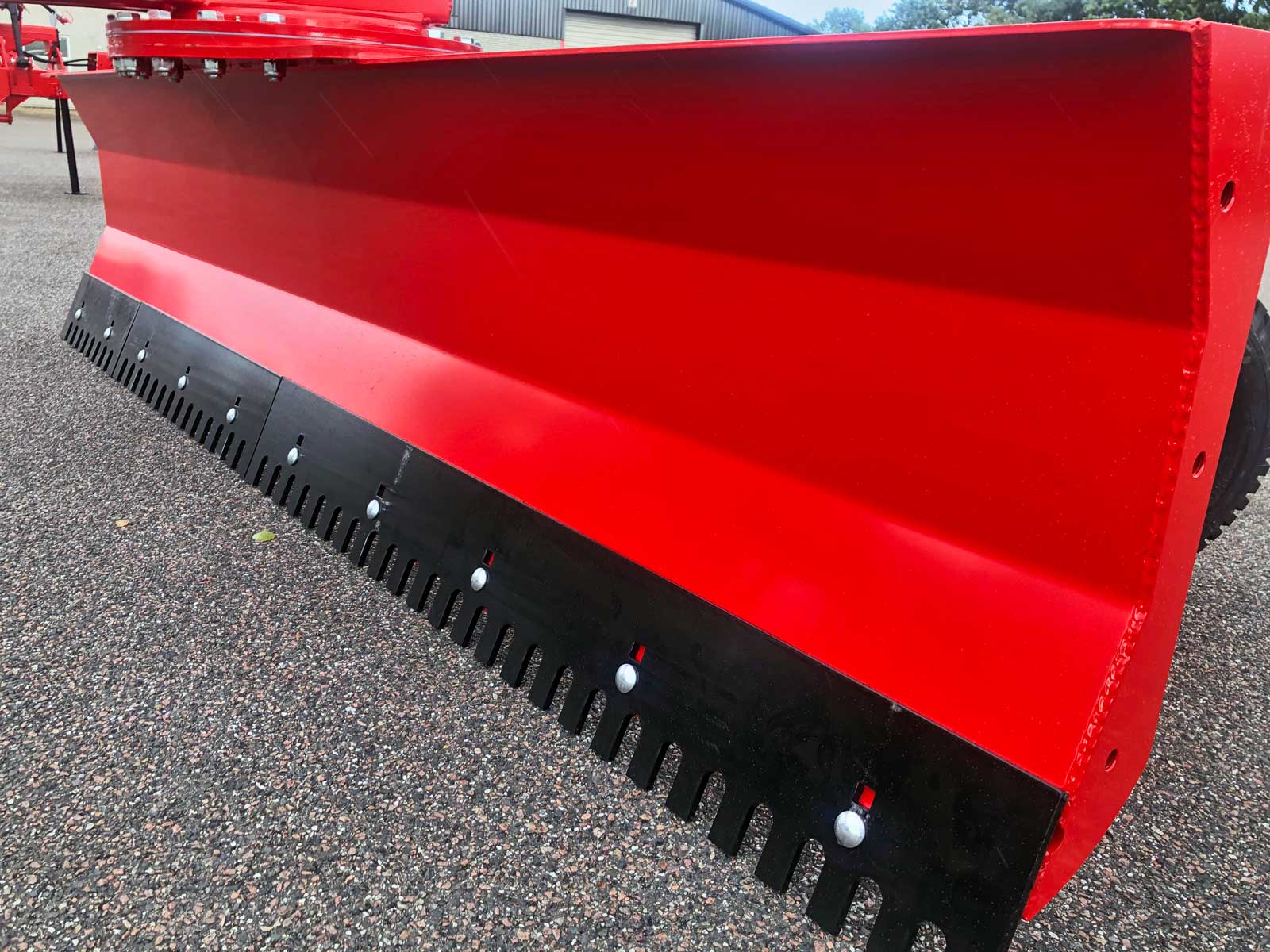 Mounting bracket for hydraulic cylinder and wear steel for the blade are made of Hardox 500. Heavy reinforcements on the back and on the side of the blade. On the side of the blade there are holes for mounting the snow blade and side plates.
