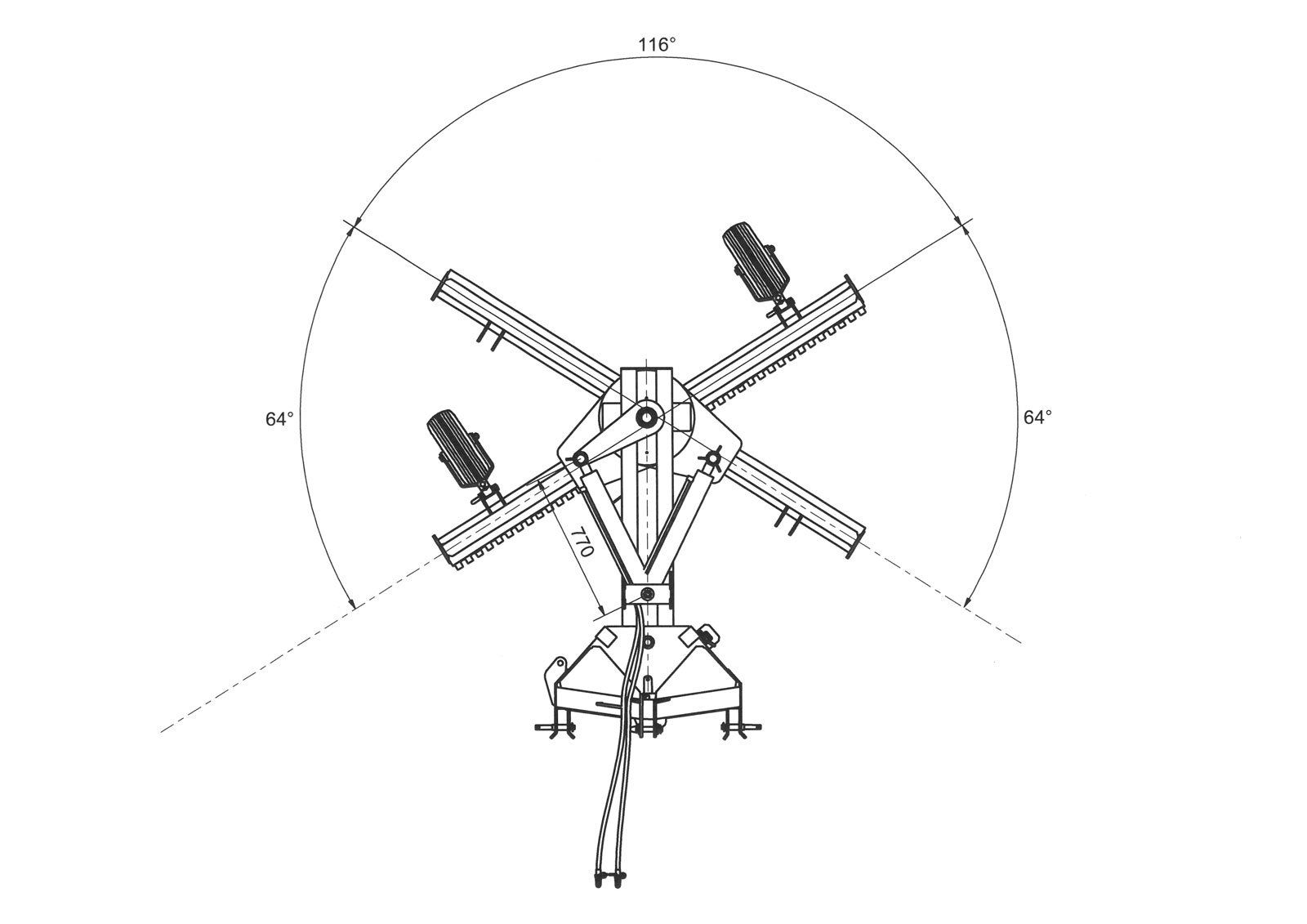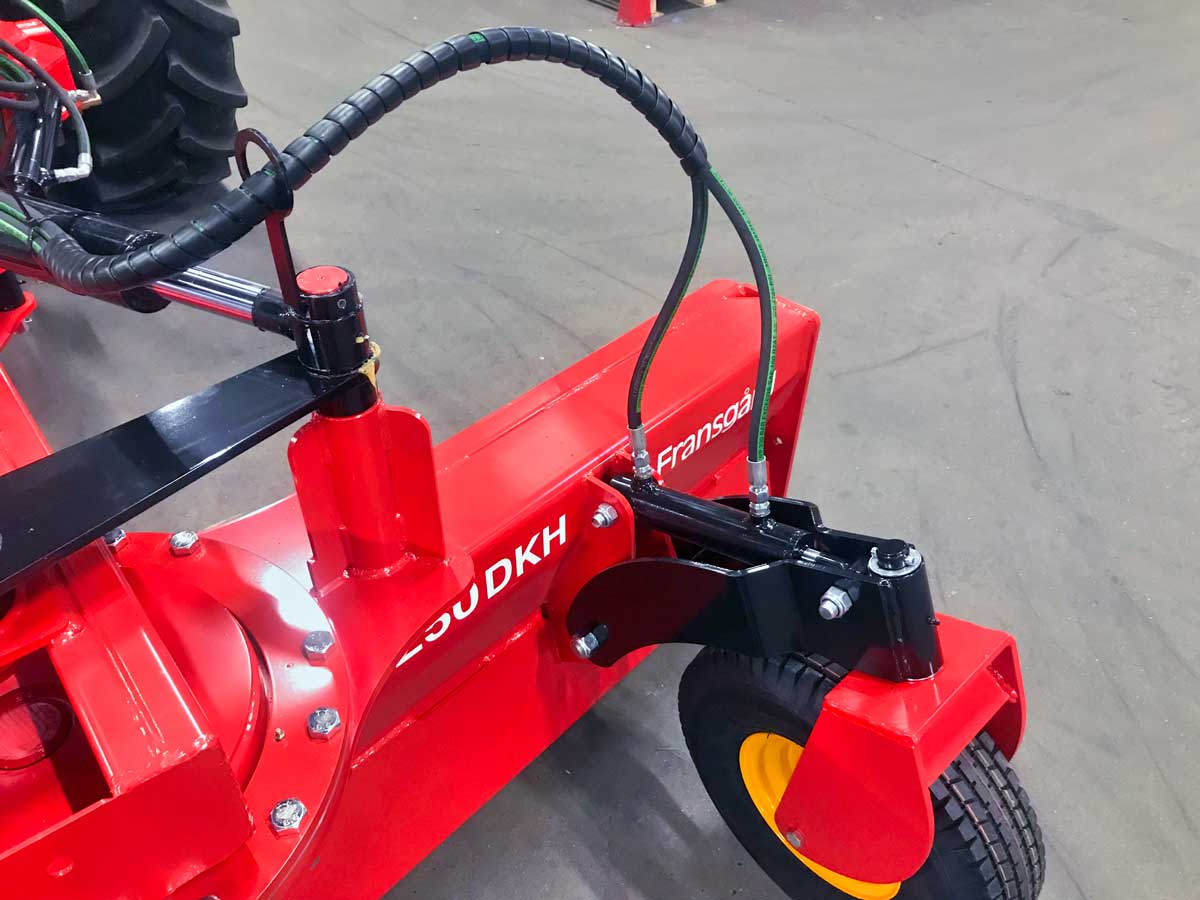GT-DKH sets a new standard in professional cutting. The icing on the cake is the 3-point suspension design, where the horizontal angle is set up to 20° to each side between boom and hitch, thereby not stressing the lift arms on the tractor. This reduces wear and thus costs.