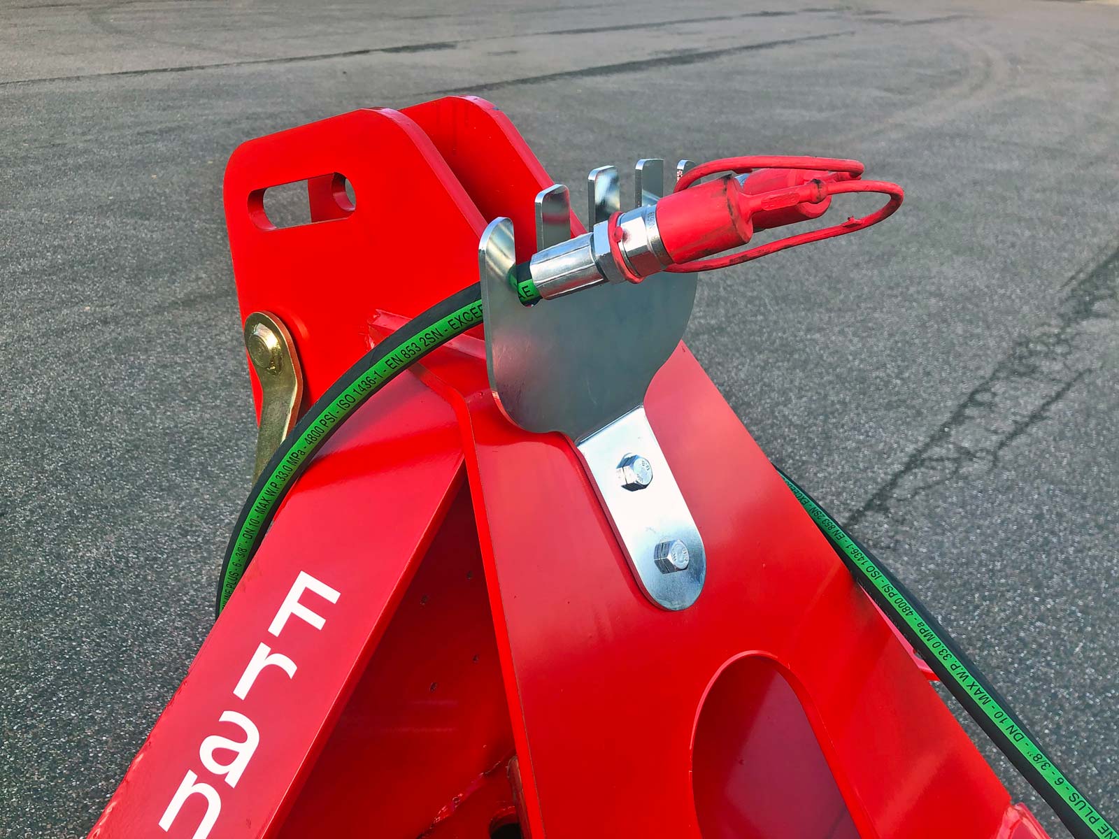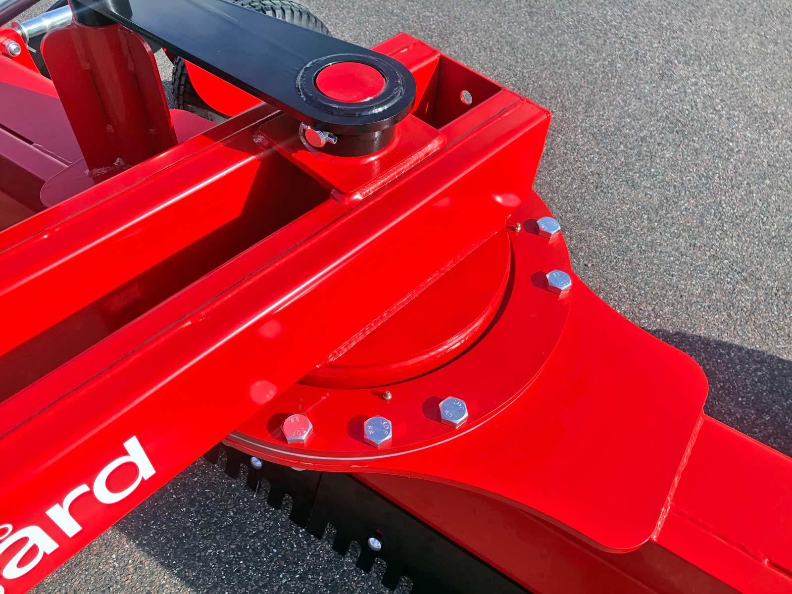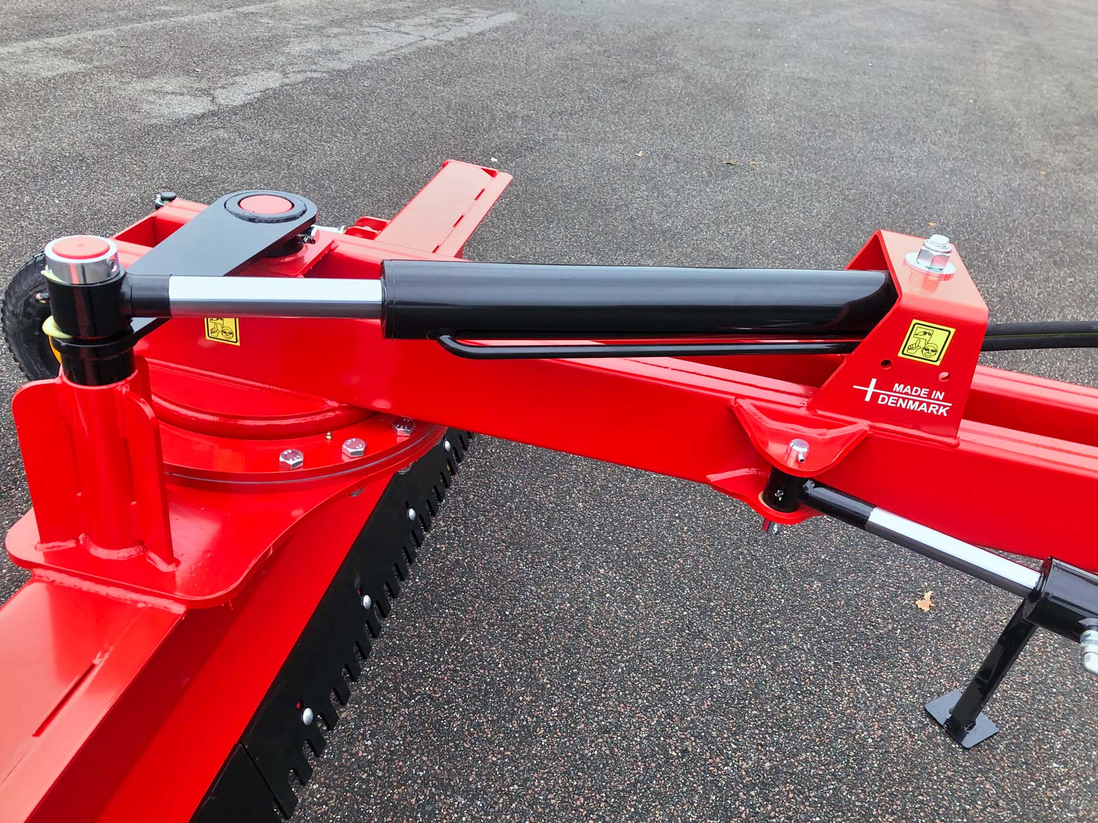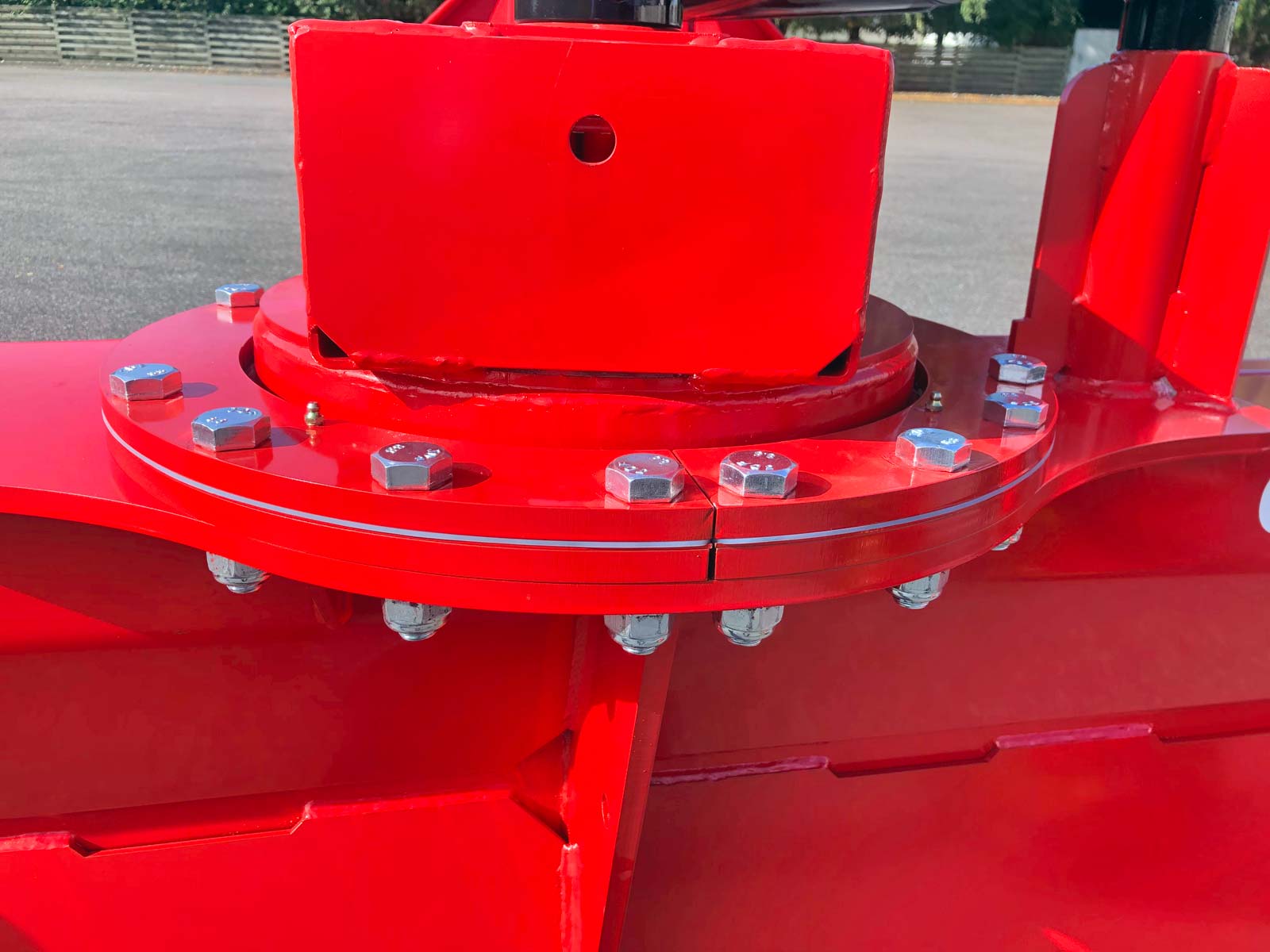 The hydraulic cylinder is well protected on top of the boom and ensures the best blade rotation on the market. An elongated top bar attachment and stepless adjustable wheels provide smooth road levelling. With hydraulic offset adjustment (optional extra) and a snow blade (optional extra), you can move the snow far to the side.