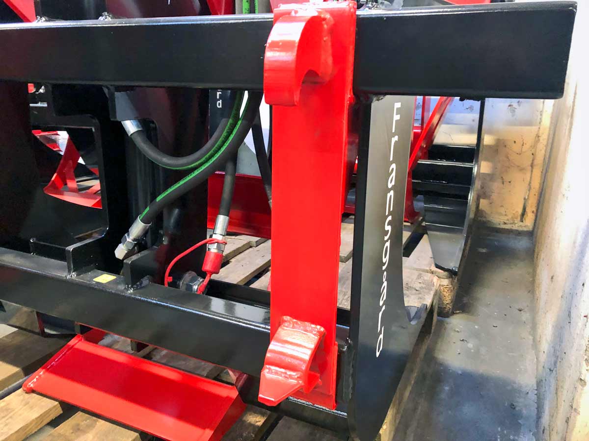 Fransgård's SK log grapple is available in 2 different models: SK-950 and SK-1400. The SK-950 has a maximum opening of 95 cm, and the large SK-1400 has a maximum opening of 140 cm.