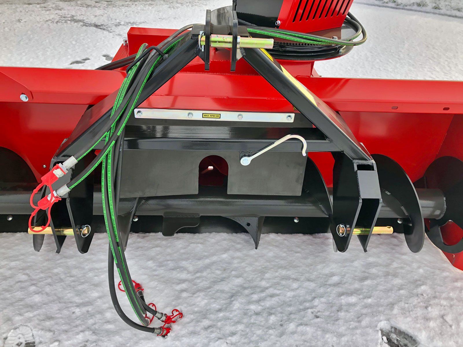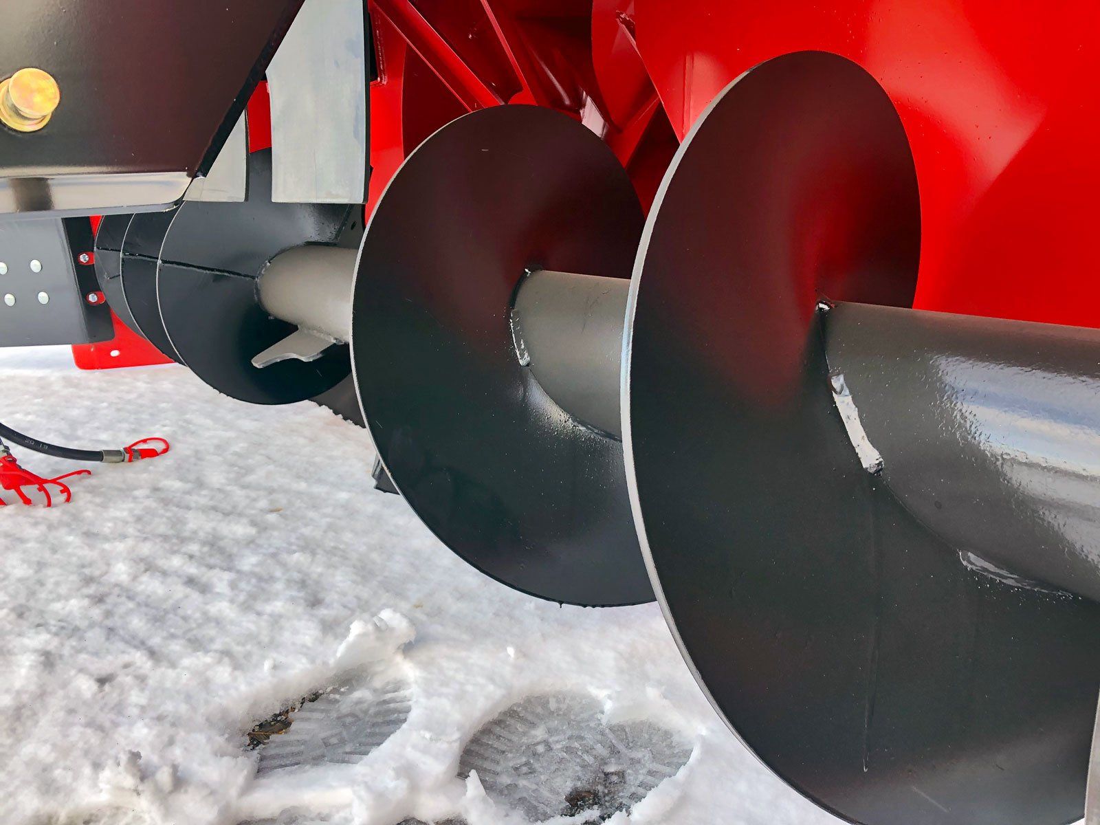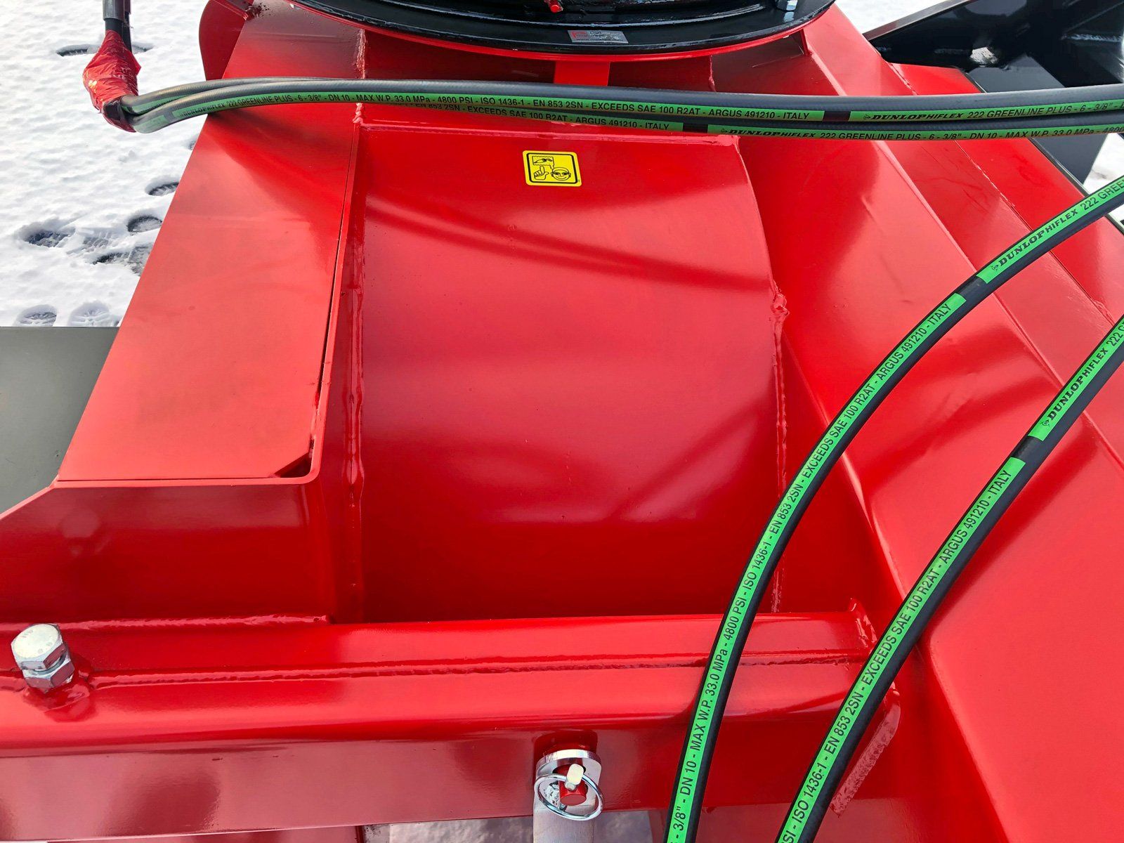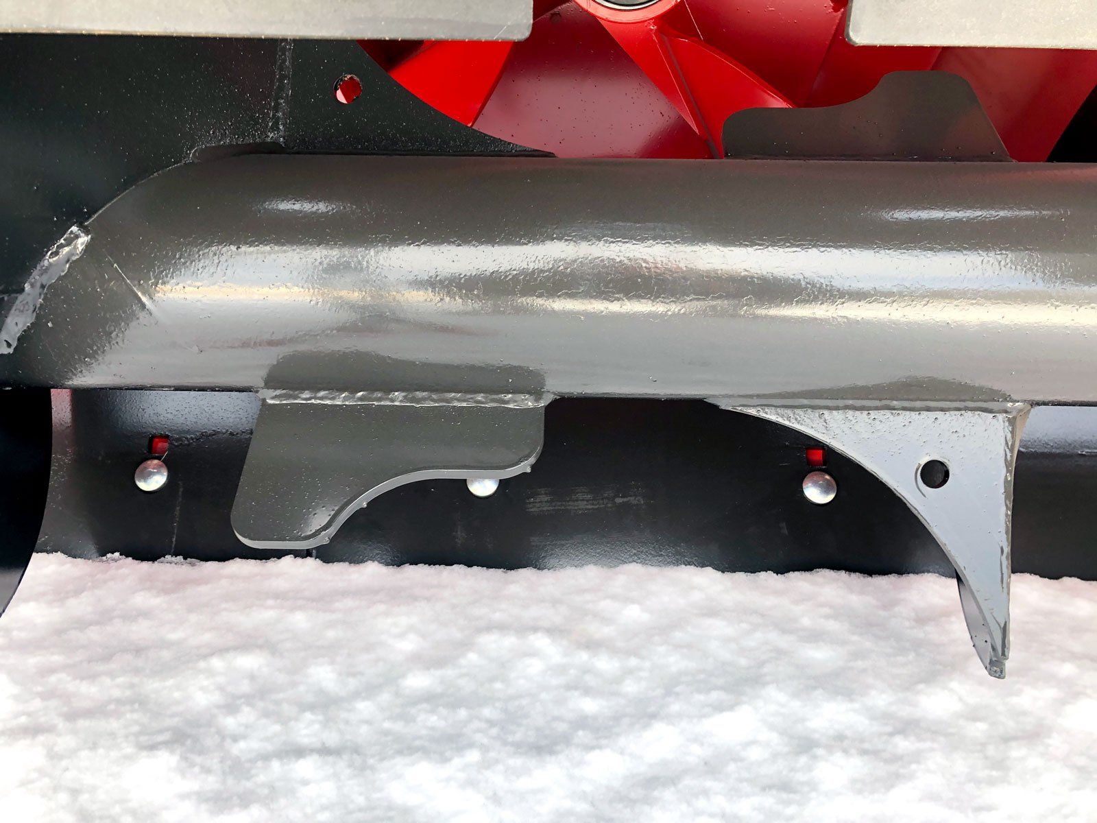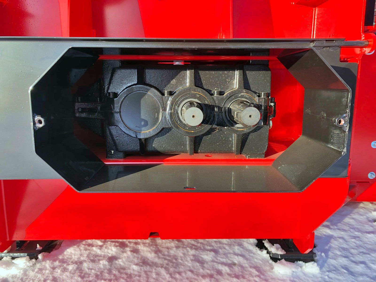 The snow blower's chassis is built with extra strong steel (Domex 420) in the fan housing and sides, as well as Hardox 500 wear shoes and wear steel.