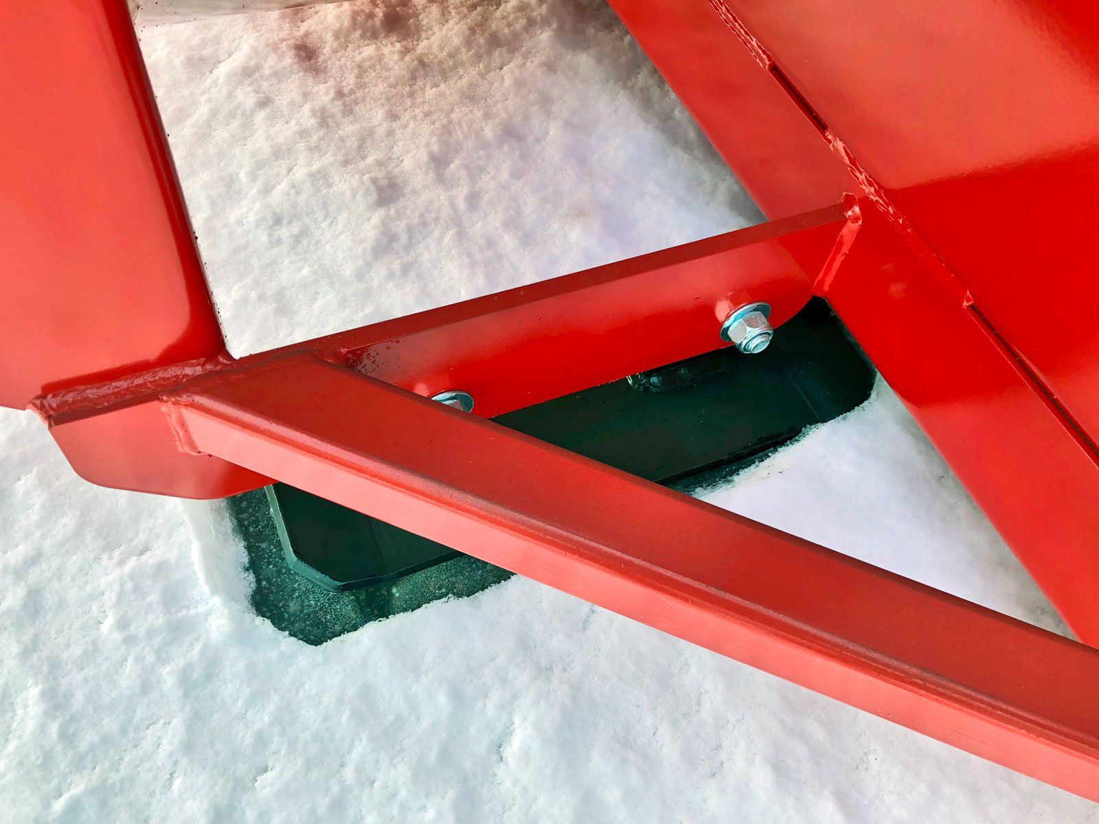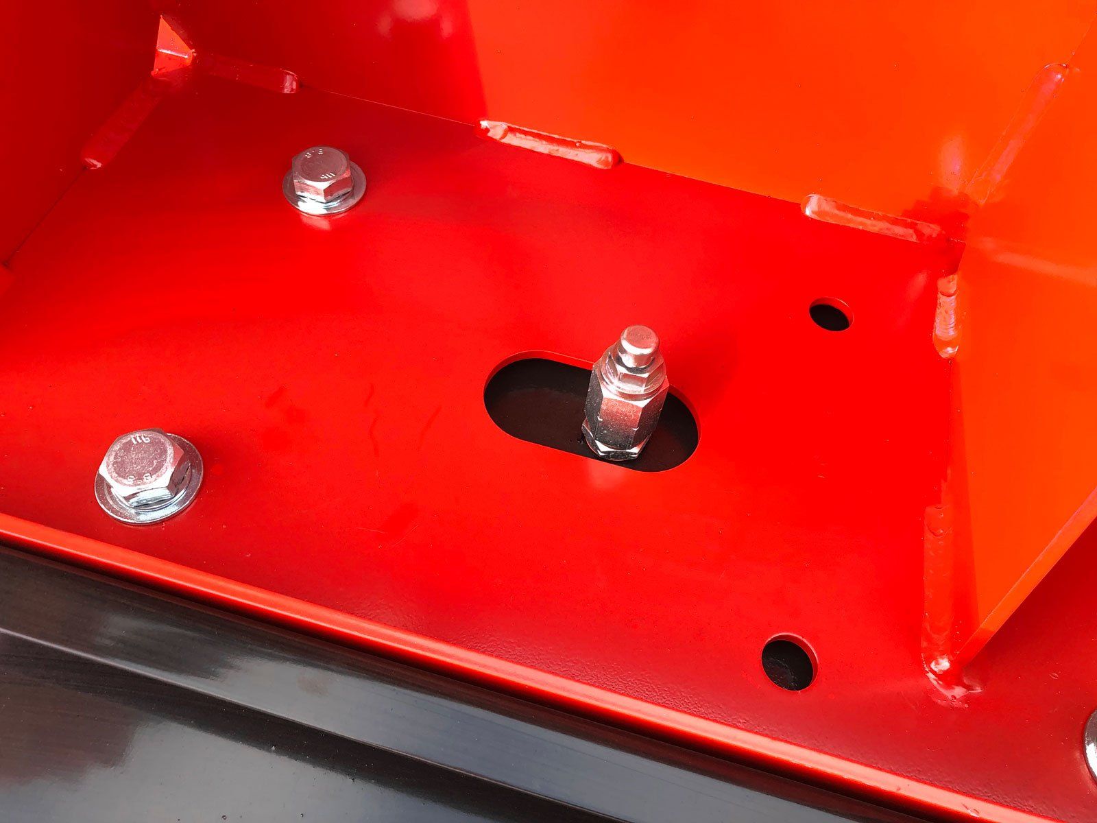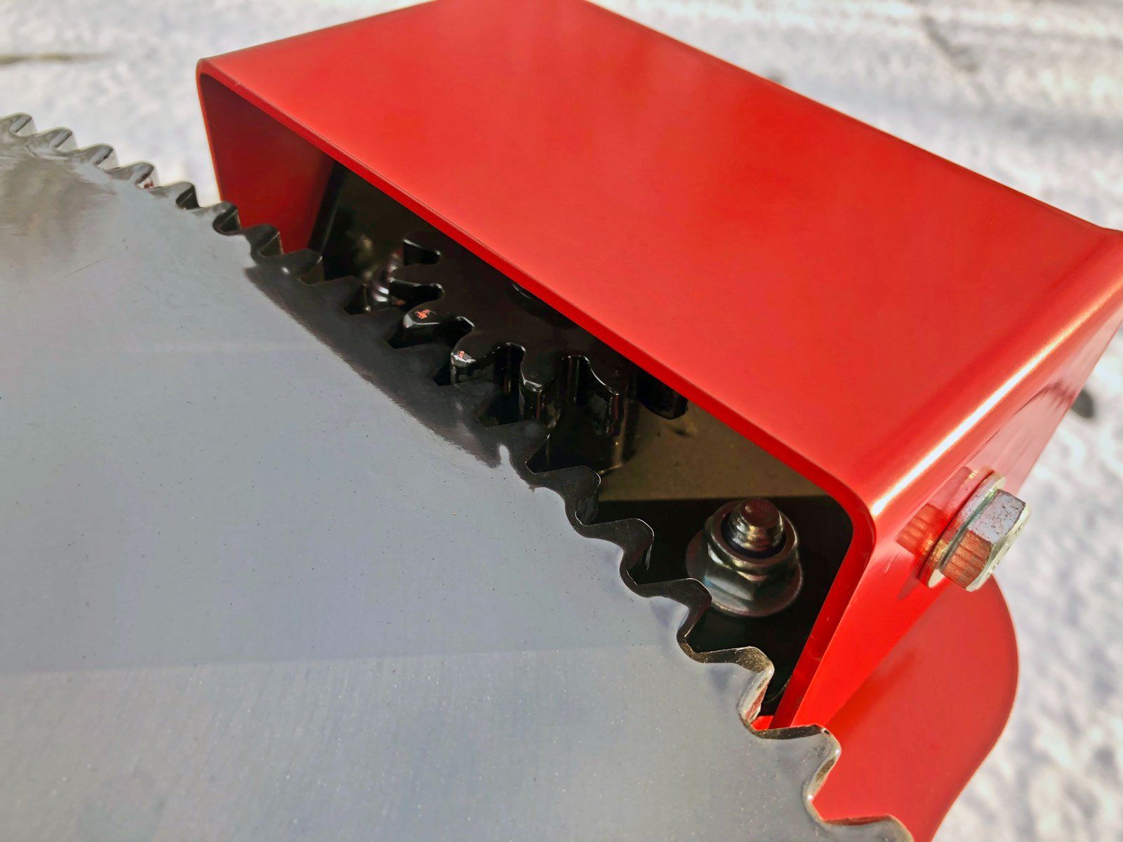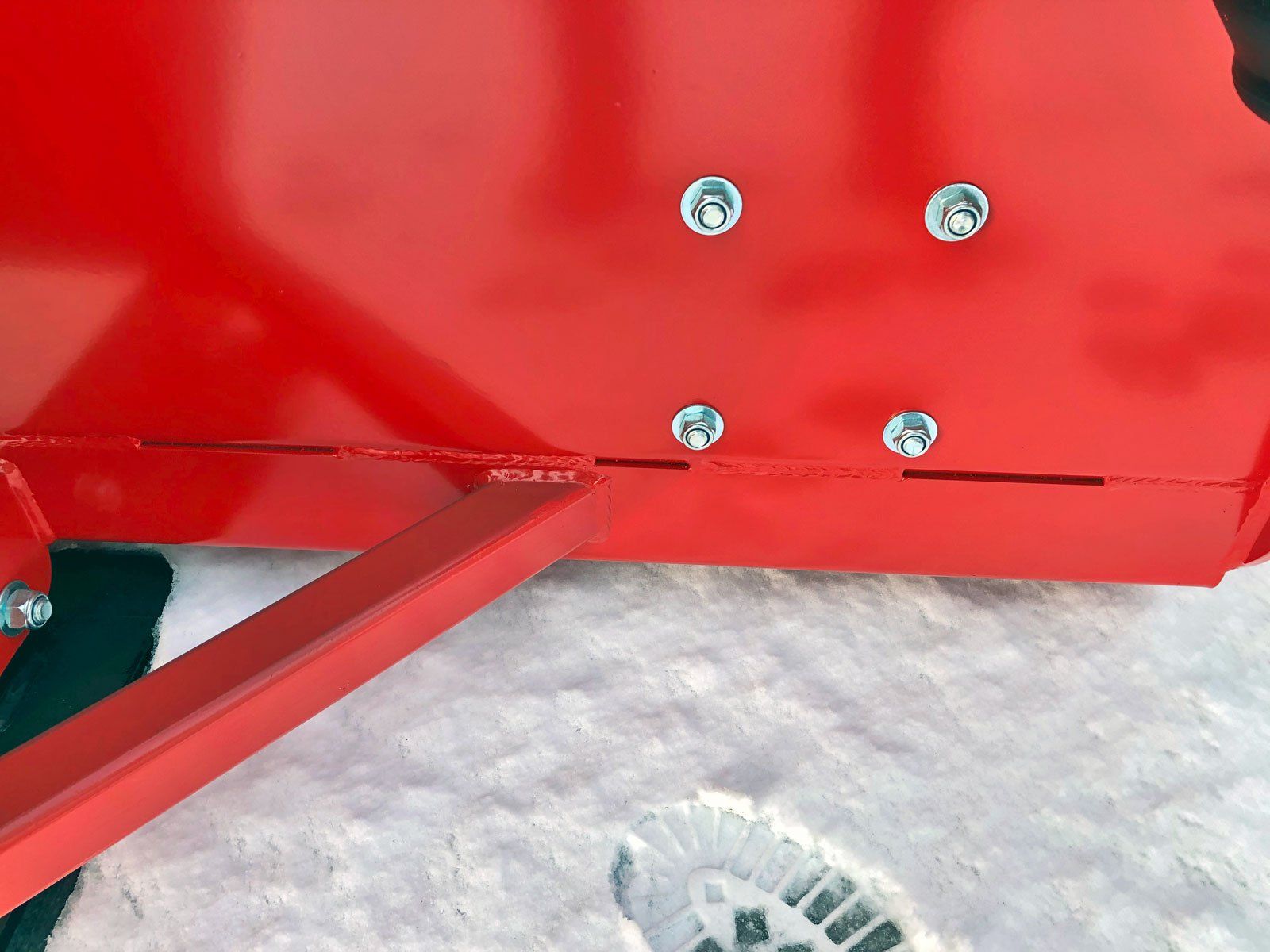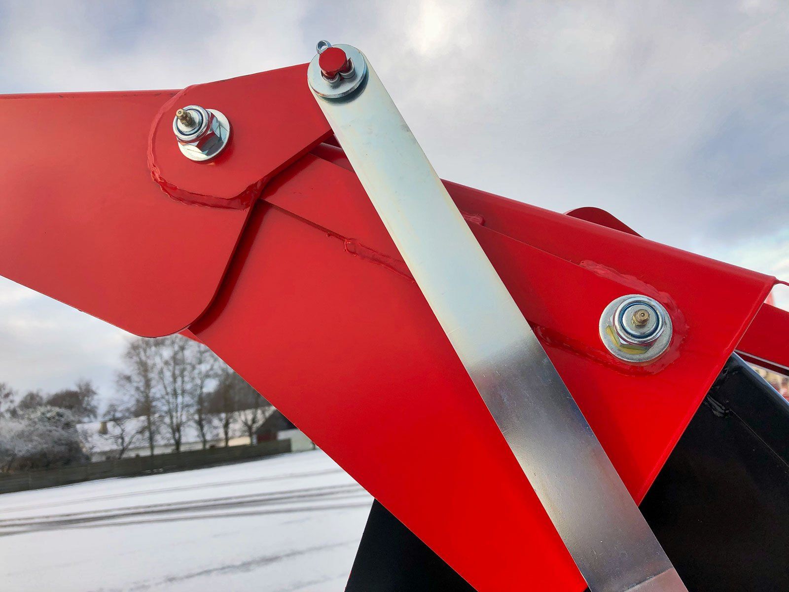 The snow blower's chassis is built with extra strong steel (Domex 420) in the fan housing and sides, as well as Hardox 500 wear shoes and wear steel.