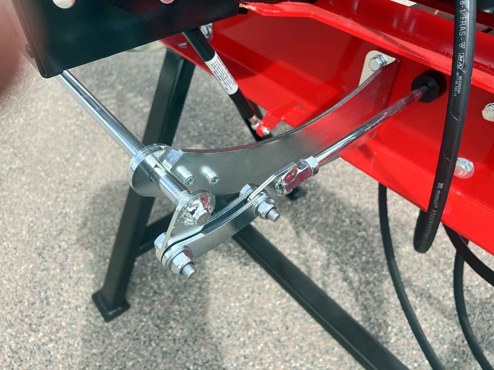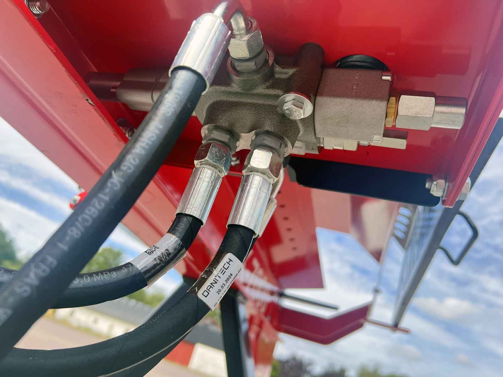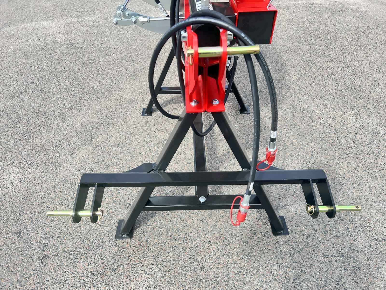 The machine is equipped with important safety features, ensuring it meets the latest and strictest safety standards for log splitters. A sturdy safety screen and two-hand operation minimize the risk of accidents during use.