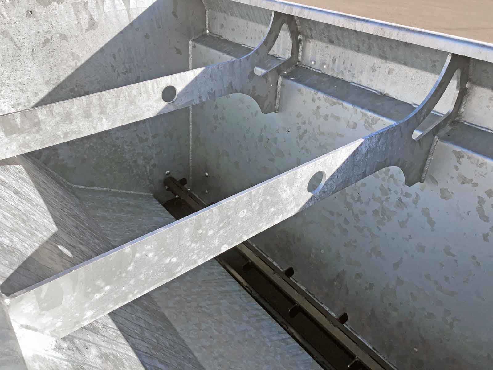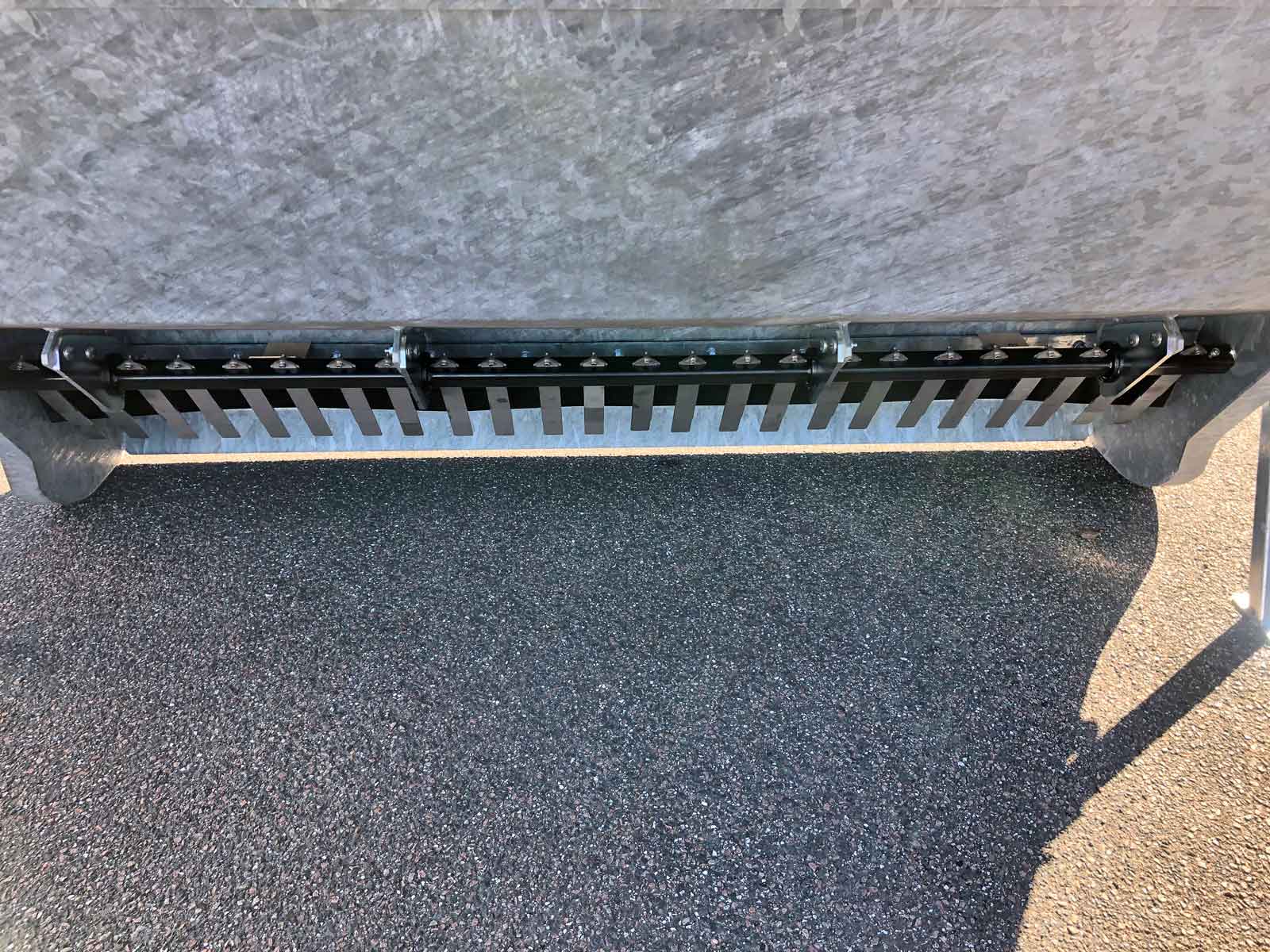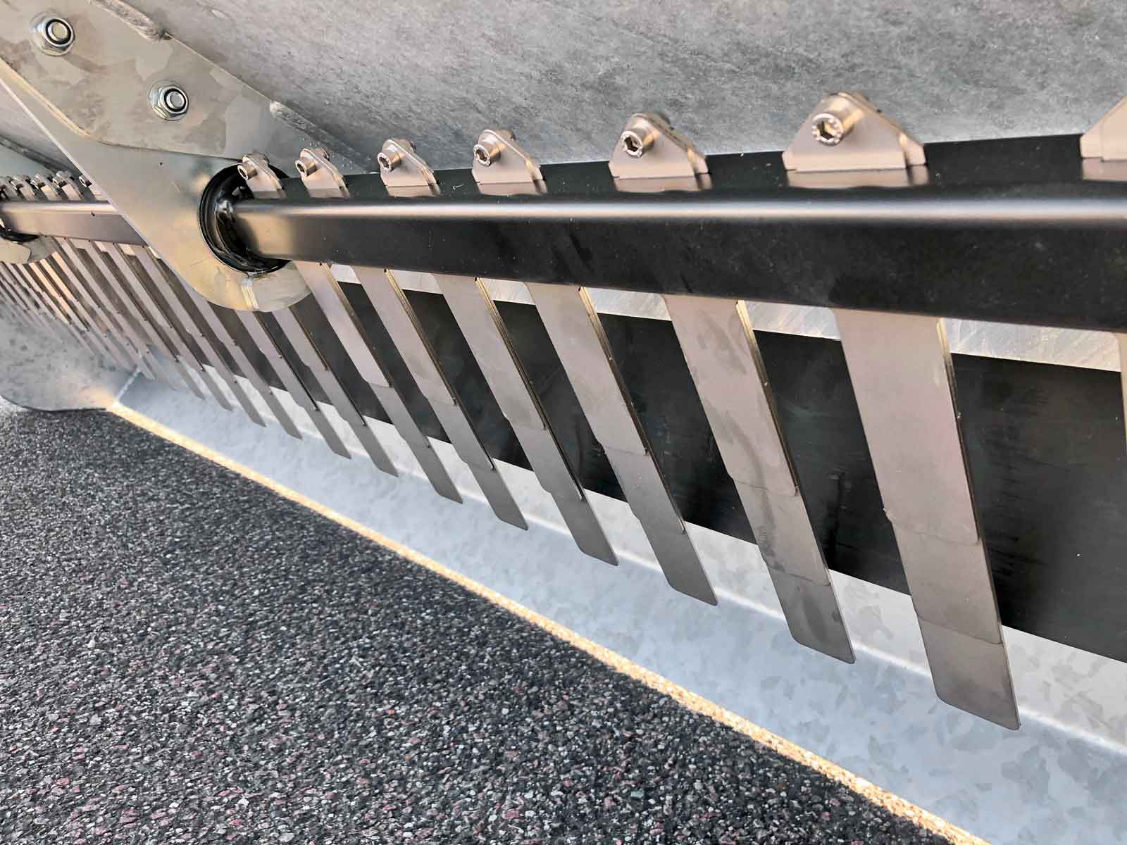 Strøkassen er bygget i højstyrkestål (Domex 420) med slidestål i toppen og på undersiden. Hver model er udstyret med en hydraulisk motor med et kraftigt kædetræk til drift af valse udstyret med spiralformede knopper samt en omrører, der sørger for ensartet udlægning af det ønskede strømateriale. Valsen er desuden udstyret med stenudløser og er hurtigtømmende. Nyt stenudløsersystem med fingrefjedre sikrer, at større sten nemt kommer med ud samtidig med, at det kun er minimalt ekstra strømateriale, som slipper med ud.