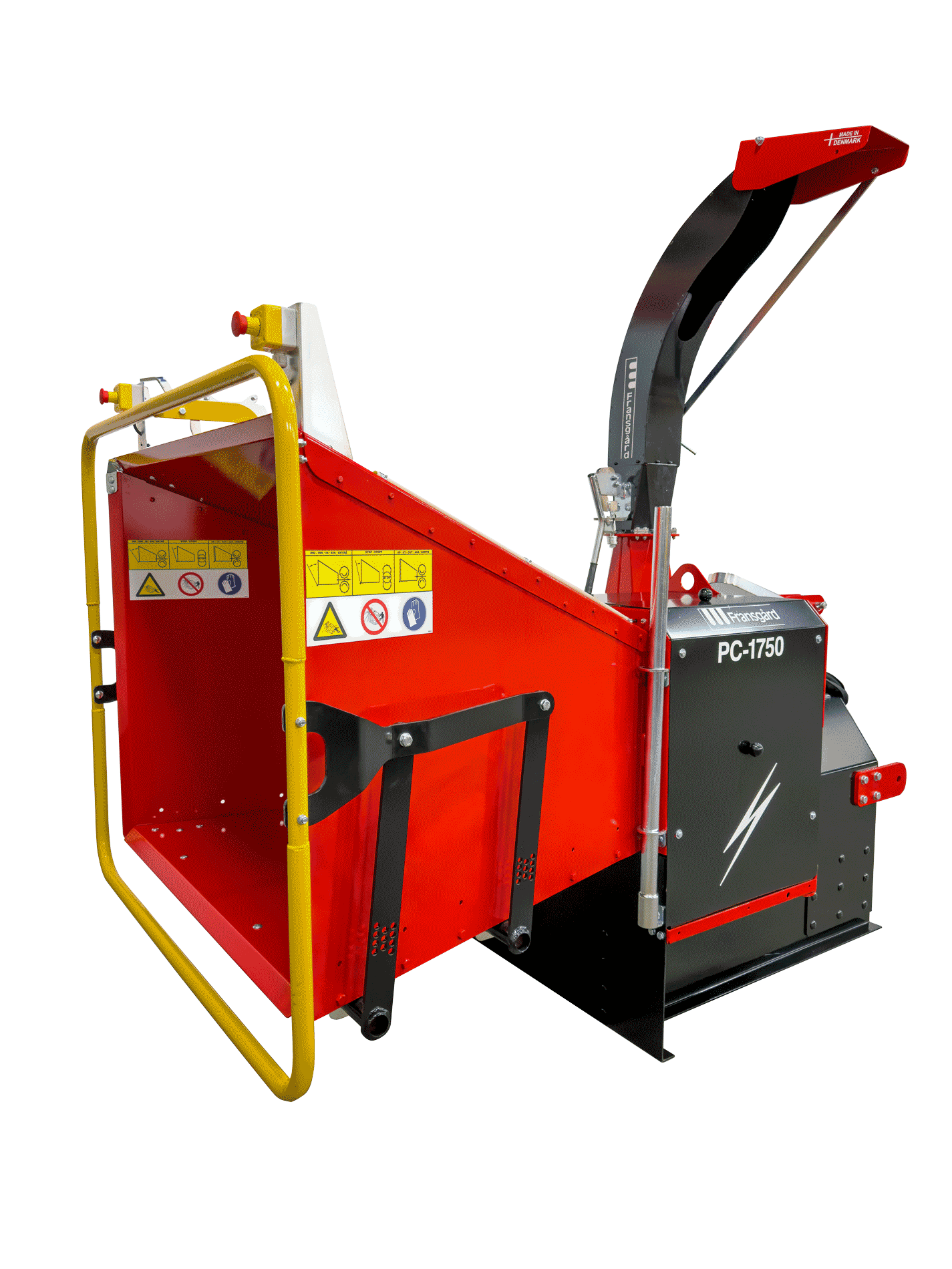 Denne traktormonterede flishugger PC1750-SEH kan håndtere træstammer op til 17,5 cm i diameter. Den fodres med håndkraft via den store indmadertragt. Den kraftige hovedramme på maskinen medvirker til driftssikker flisning.