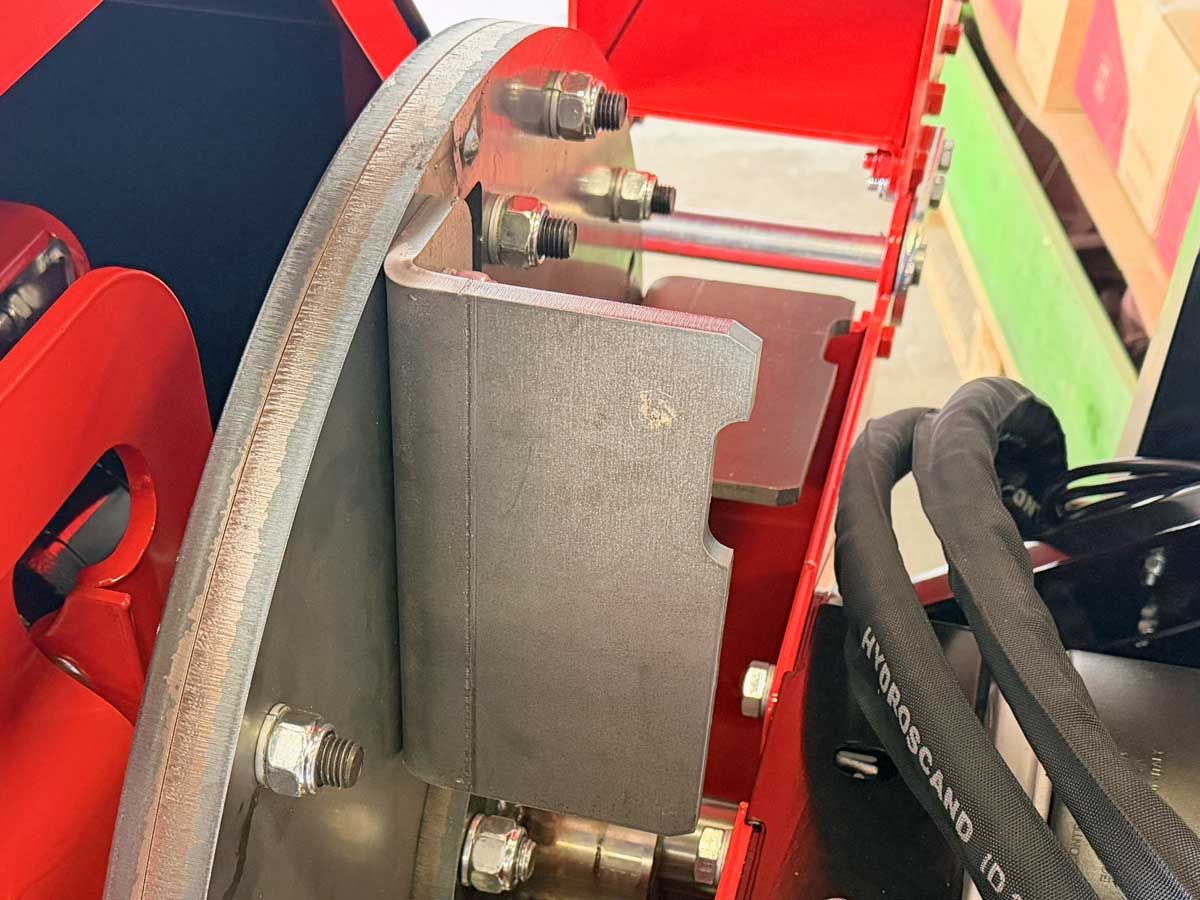 Som ekstra sikkerhed er der i hver side af indmadertragten placeret 2 nødstopsknapper, så man kan stoppe maskinen, hvis en faresituation skulle opstå.
