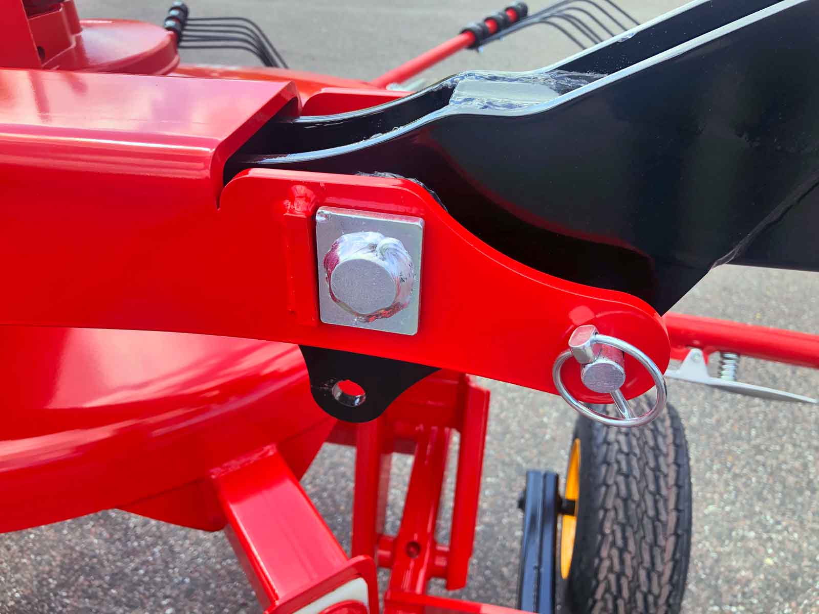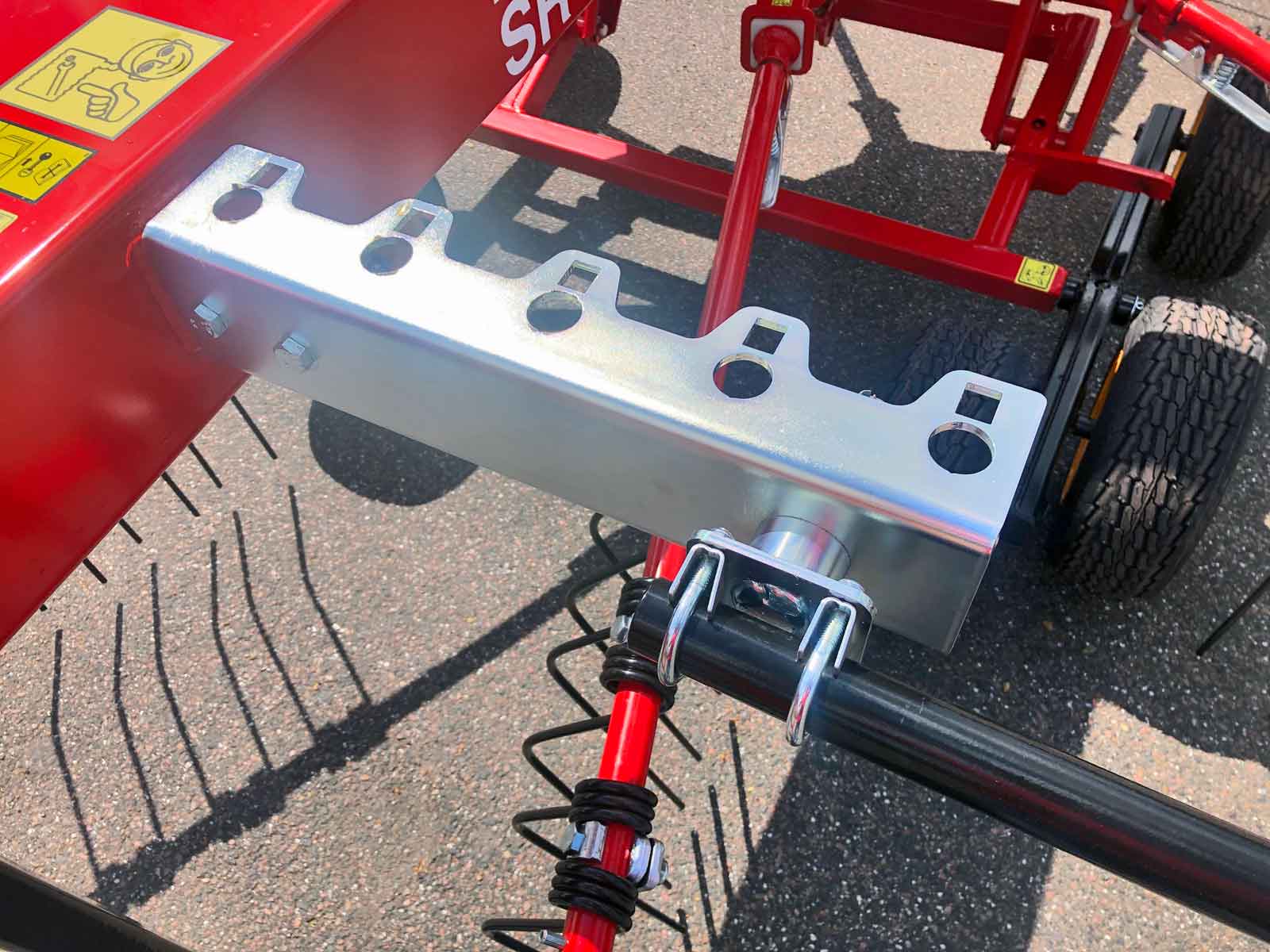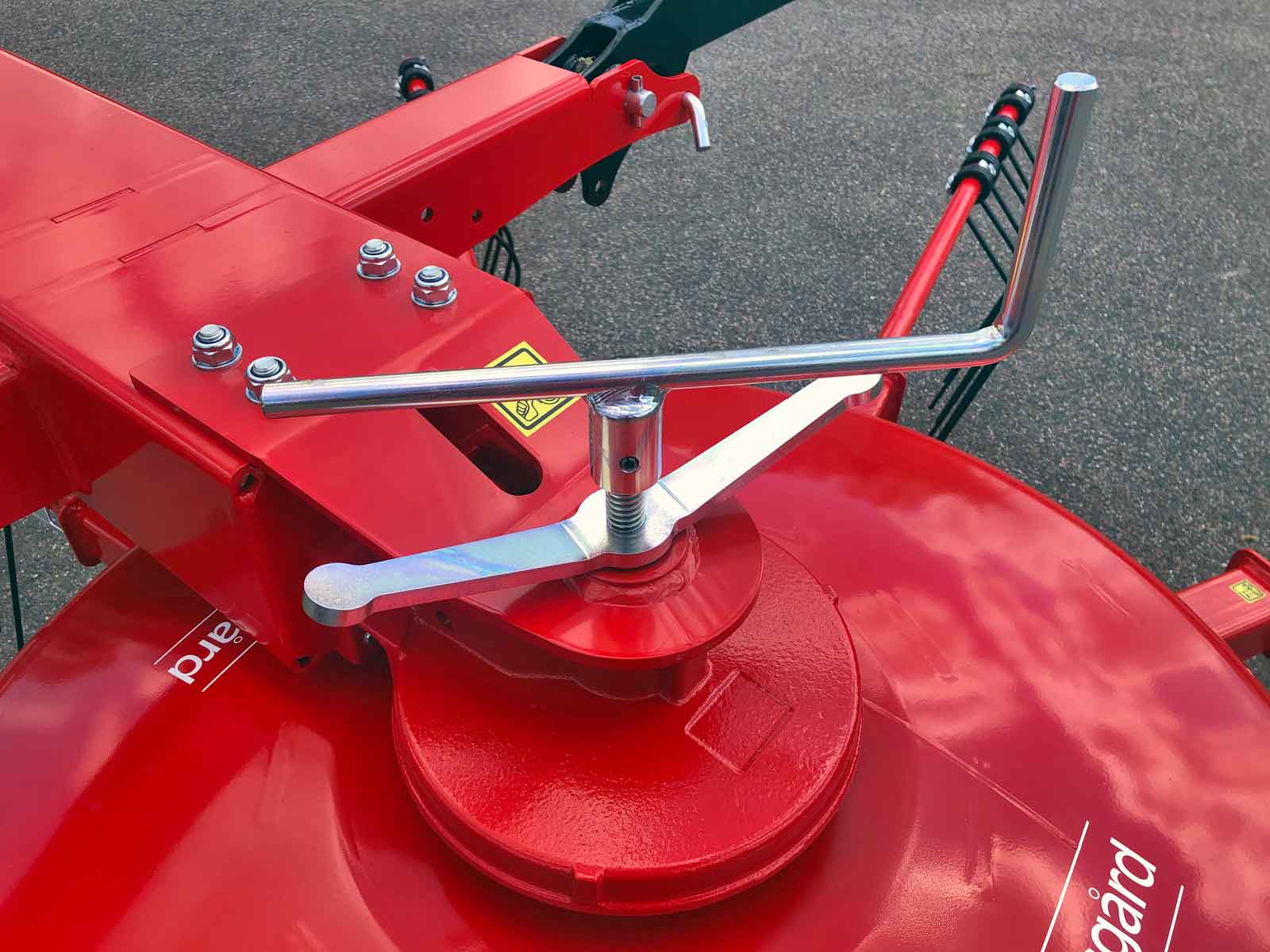 Via en spindel i toppen af rotoren indstilles arbejdshøjden trinløst. Rivearmen afmonteres let via et fjederpåvirket håndtag.