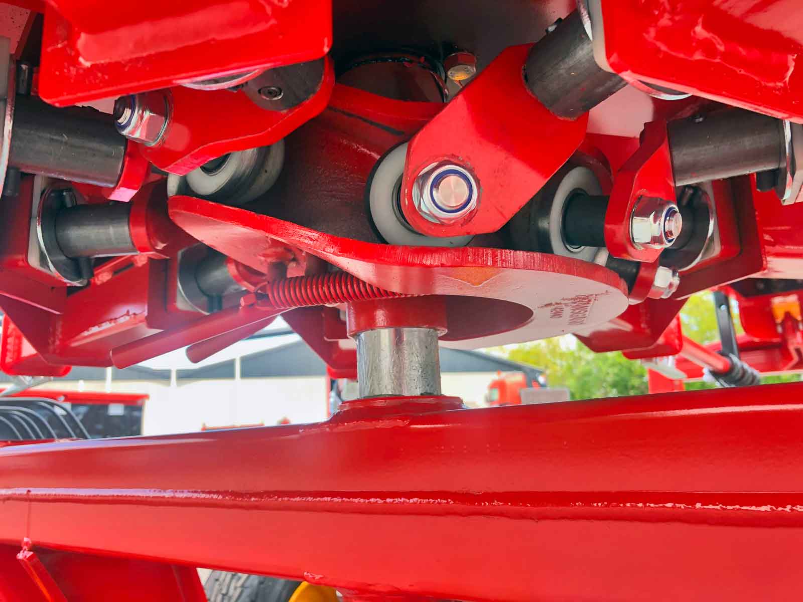 SR-3900 er opbygget på et kraftigt hjulophæng med transportsikring. Boogie-systemet med de 6 hjul sikrer en mere rolig og jævnere arbejdsgang. Kurvestyret under rotoren har 3 indstillinger for at sikre optimal rivning og en perfekt skårlægning.